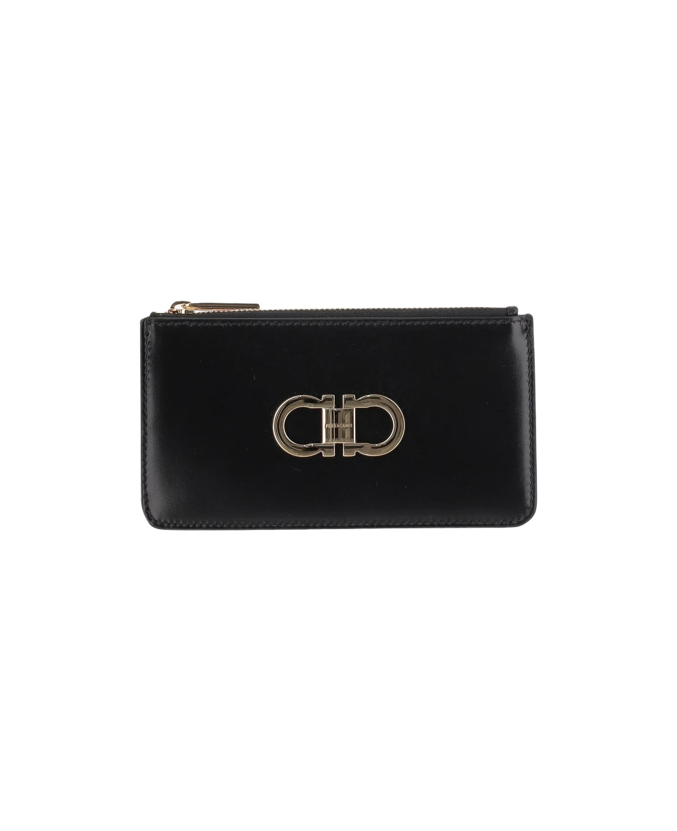 Card holder made of palmellato calfskin Interior contrasting color Top zipper closure Six card compartments Double Gancini with gold finish on front Black Made in Italy Composition: 100% calfskin Height: 9 cm Width: 15 cm Made in: Italy Color: Black Size and fit: - Height: 9 cm - Width: 15 cm - Model number: 220629001NEROFLAMERED