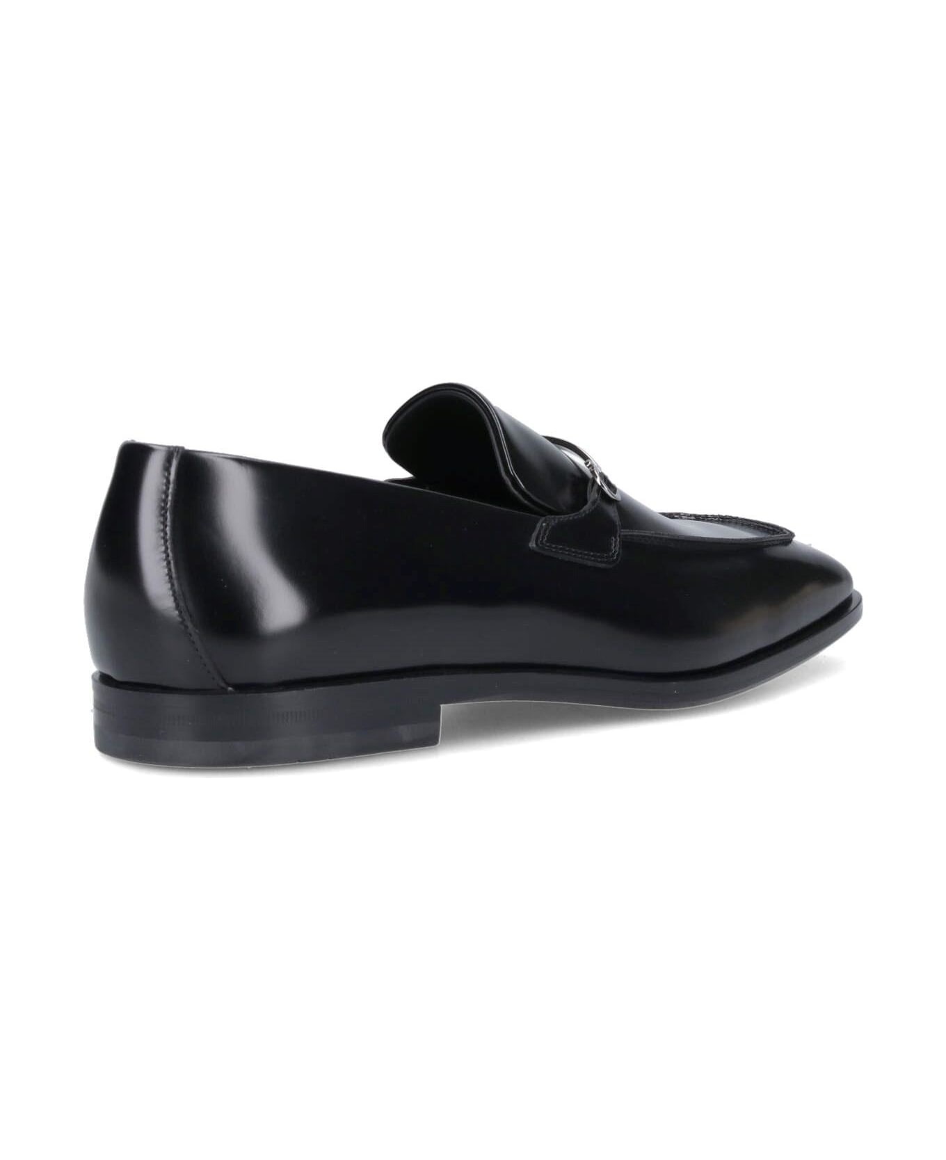 Ferragamo "Gancini" black leather loafers with square toe, top strap with silver metal Gancini logo charm, engraved logo detail, slip-on fit, and tone-on-tone leather sole. Composition: 100% Calf Leather Made in: Italy Color: Black Model number: 774128019