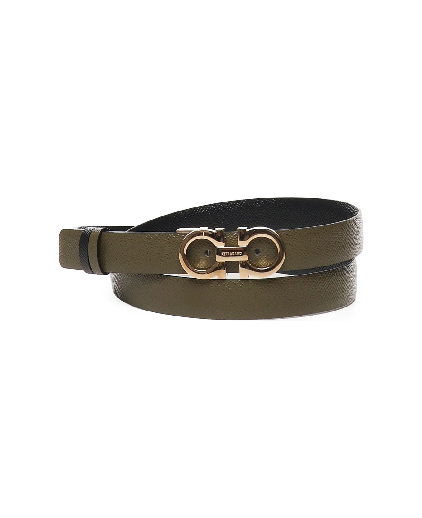 -Reversible, two-tone belt -Made of hammered calfskin -Buckle with double golden hooks -Height: 2. 5 cm -Made in Italy -Colour. Green, Black Composition: 100% Calfskin Made in: Italy Color: GREEN, black Model number: 23A565781468830