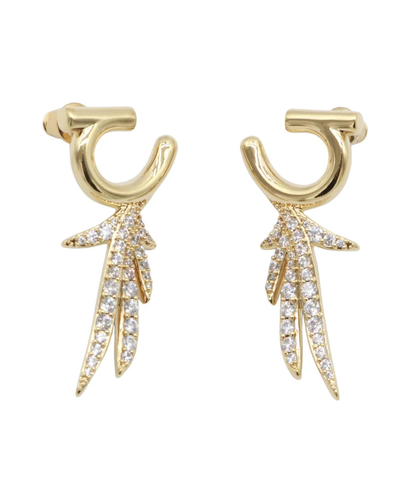 Gold metal earrings from Ferragamo featuring brass, logo signature, crystals and butterfly closure. Composition: _, 60% Brass, 40% Glass Made in: Italy Color: Golden Model number: 794091760969001