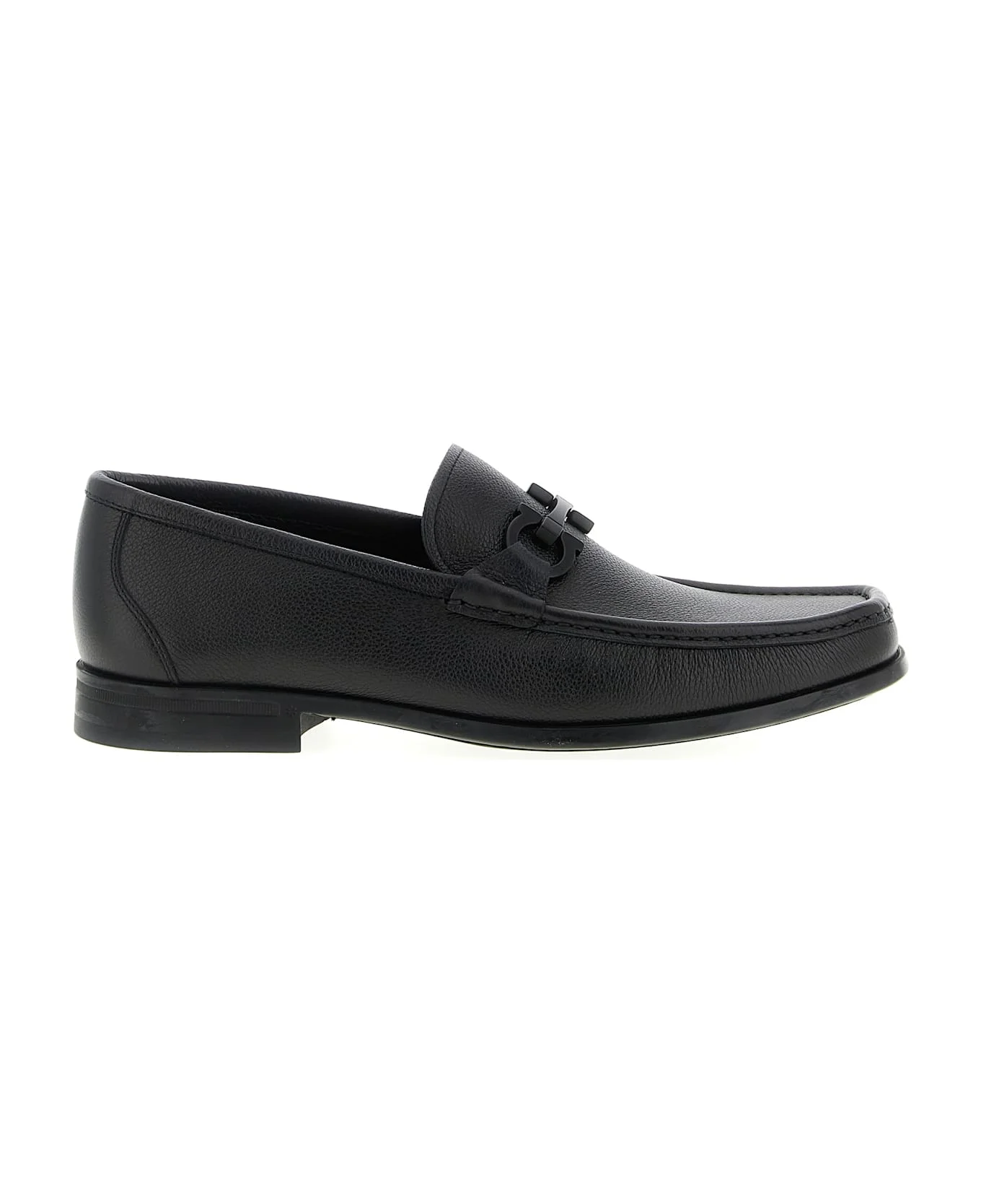 'Grandioso 2' hammered leather loafers with stitched tray, tone-on-tone metal 'Gancini' clamp detail on the front, tubular construction, rubber sole. Composition: 100% calfskin leather (Bos Taurus) Made in: Italy Color: Black Size and fit: - US FERRAGAMO SIZE - EEE Fit Model number: 791770NERO