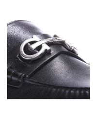 Ferragamo black Grazioso Gancini loafers, leather upper and rubber sole, round toe, silver logo on front Composition: 100% Leather/rubber Sole Made in: Italy Model number: 758351020983NERO/NEWBISCOTTO