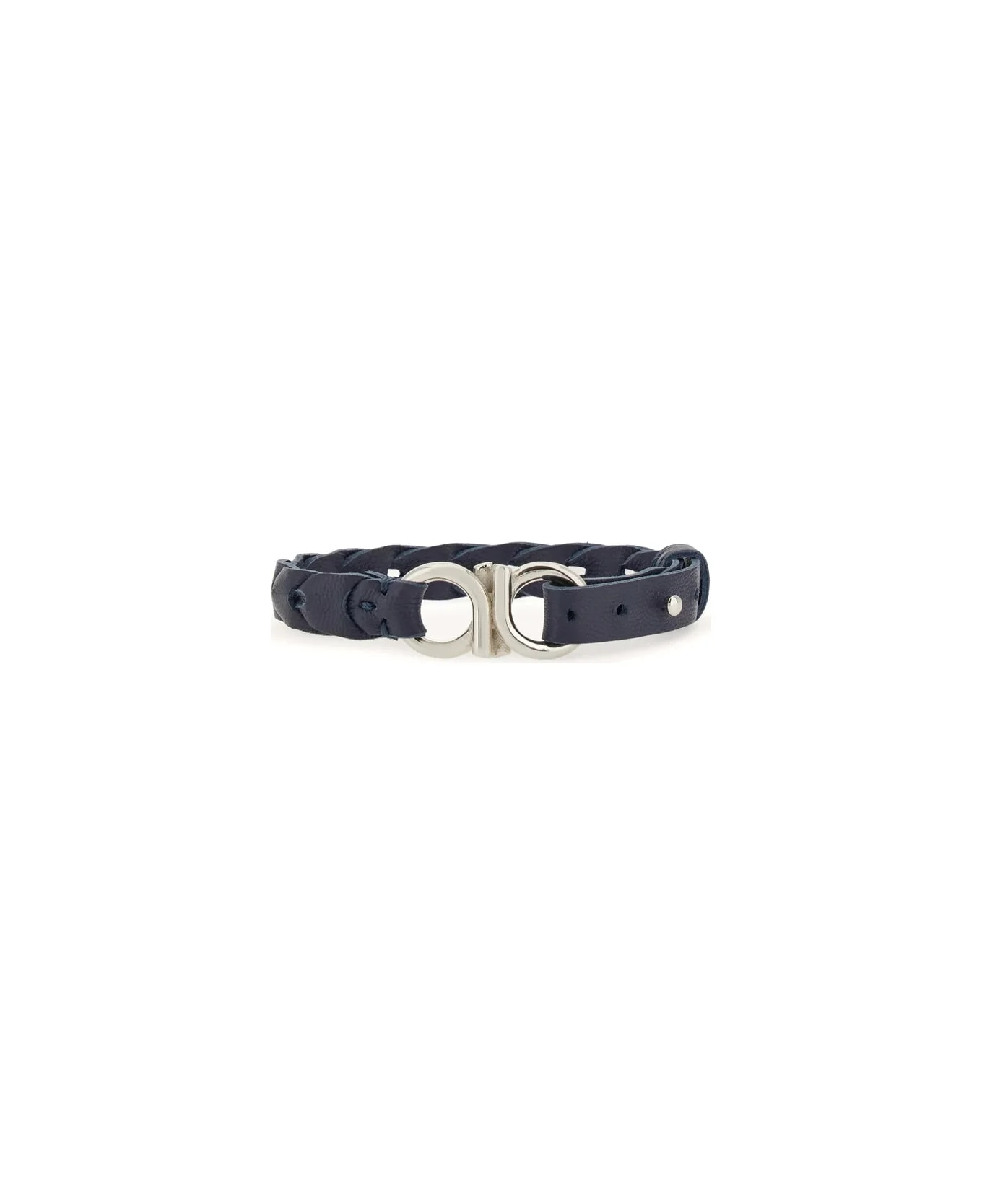 navy blue calf leather grained texture strap and press-stud fastening Gancini plaque braided strap adjustable fit Made in: Italy Color: BLUE Model number: 7703780780299