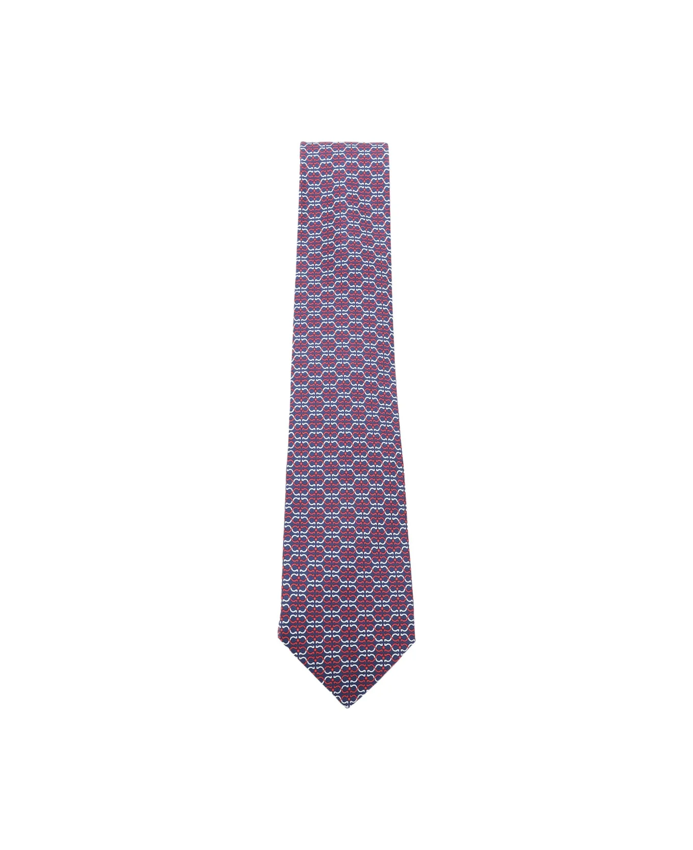 Navy and red silk tie from Ferragamo featuring all over pattern and logo patch. Composition: _, 100% Silk Composition: _, 100% Silk Made in: Italy Color: Blue Model number: 778439351204001