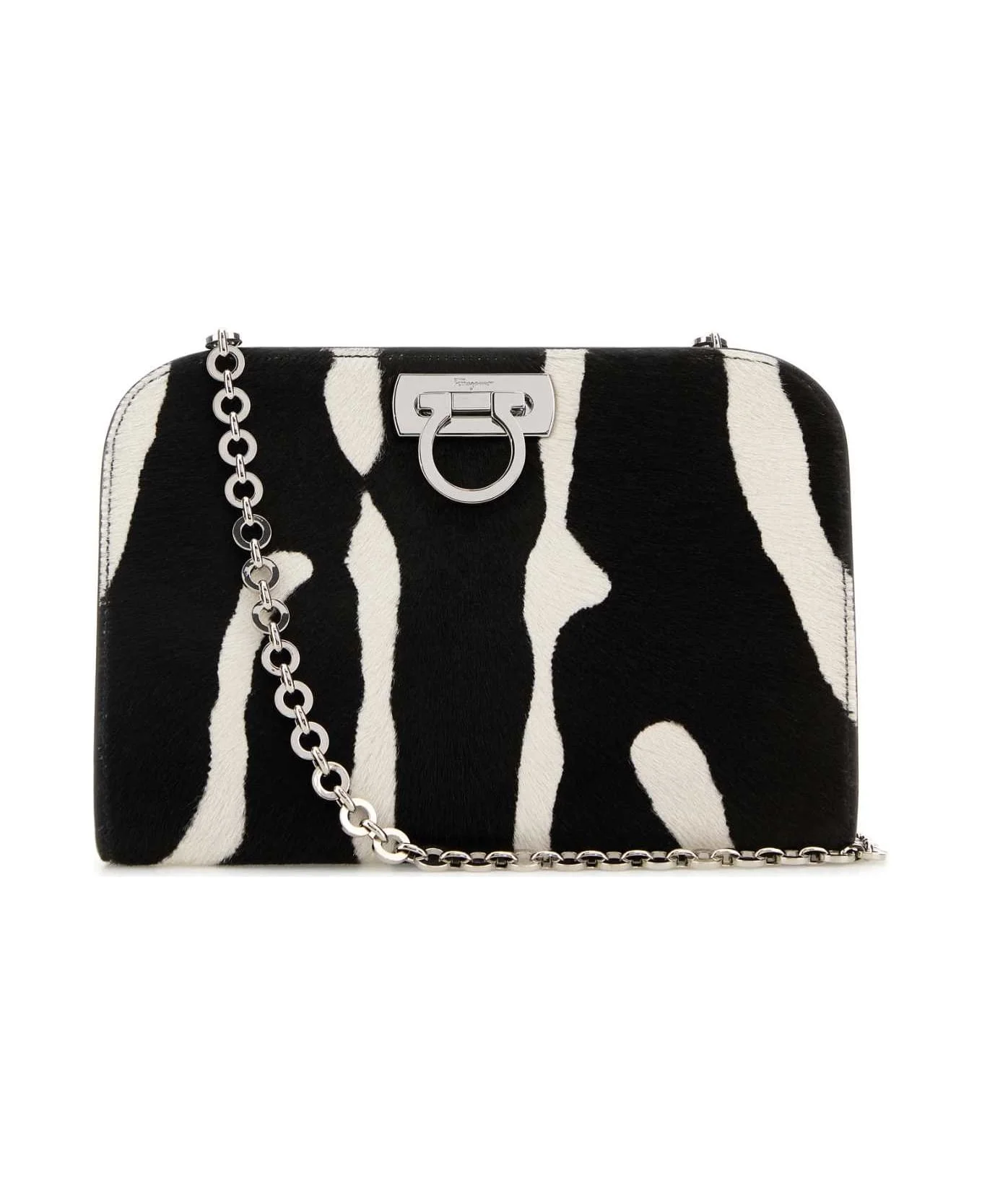 Printed Calf Hair Clutch from Ferragamo Made in: Italy Color: KASBABIANCONERO Size and fit: - Width: 23 cm Height: 16 cm Depth: 6 cm Shoulder strap length: 49 cm Model number: 21A602790200KASBIANER