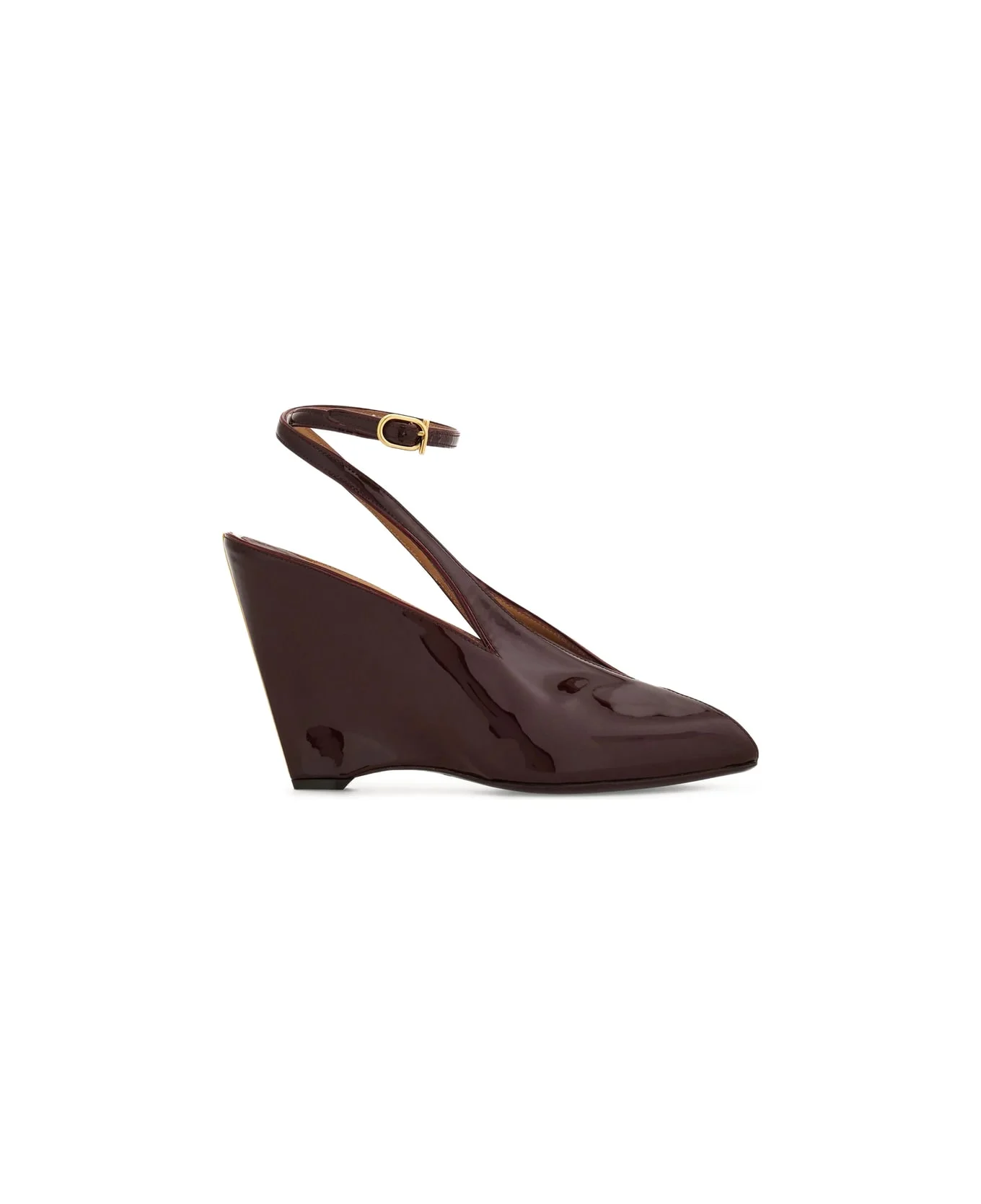 dark purple patent leather peep toe ankle strap buckle fastening wedge heel Made in: Italy Color: PURPLE Size and fit: - heel: 9.0 centimetres Model number: 01K8730787581