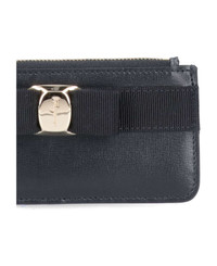 Salvatore Ferragamo 'Vara' Fiocco Card Holder, leather, black, top zip closure, grosgrain ribbon detail, gold-coloured metal buckle with engraved logo. Spring Summer 2022, women's card and wallet accessories. Composition: 100% Leather Made in: Italy Color: Black Size and fit: - A 8 X L 15 cm Model number: 734494001