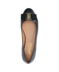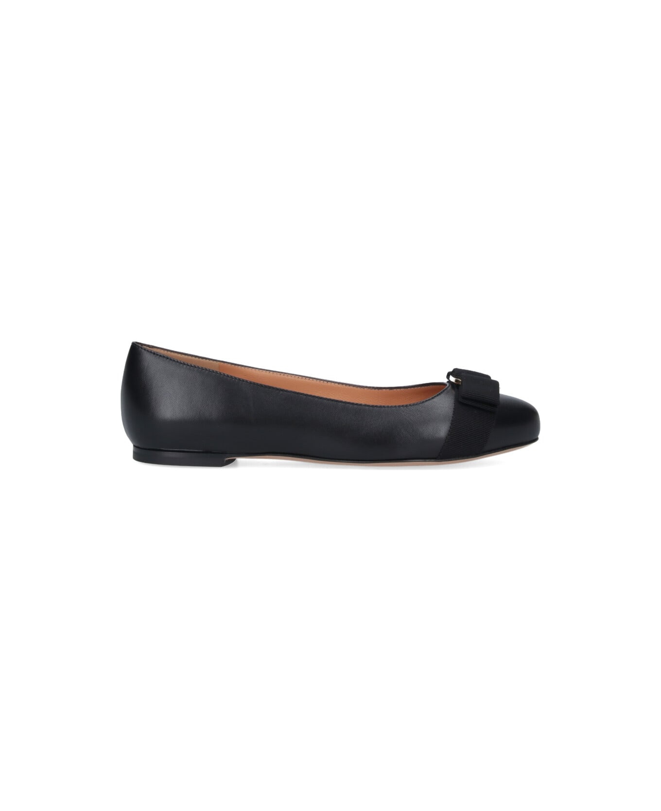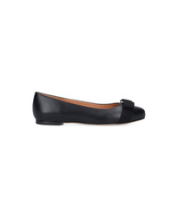 Ferragamo Varina ballet flats in black lamb nappa with square toe, gold metal logo on the top, grosgrain bow detail, slip-on fit, and leather sole. Composition: 100% Lambskin Made in: Italy Color: Black Model number: 775746003