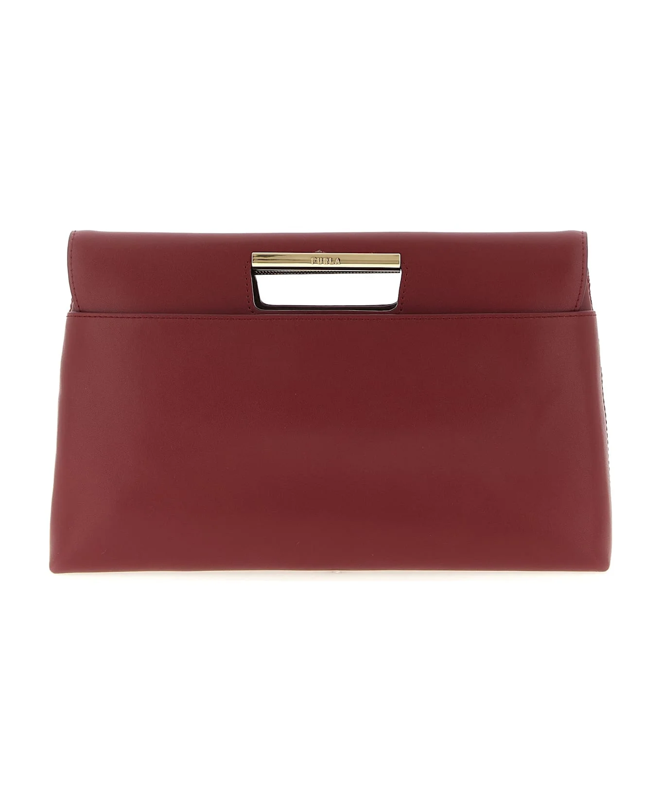 'Furla Giada' leather clutch bag with magnetic flap closure, handle with internal metal detail and engraved logo. Composition: 100% leather Made in: China Color: cherry Size and fit: - W 30 x H 19 x D 5.5 cm Model number: WE00644BX3104CGQ00CGQ00