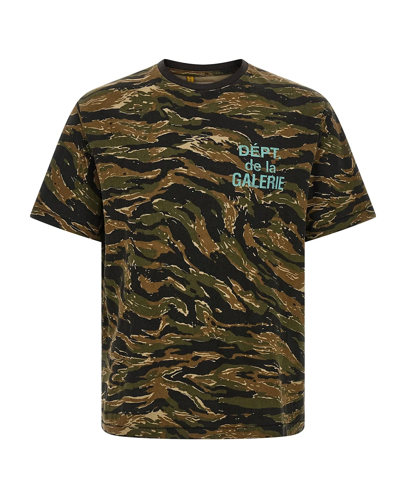 'French' camouflage patterned cotton t-shirt, logo print on the front and back, crew neck, short sleeves. Made with the washing process patented by Gallery Dept. that uses unique discoloration techniques for each garment, including logos and graphics. Composition: 100% cotton Made in: United States of America Color: Green Size and fit: - Relaxed fit Model number: FT10307TIGERCAMO