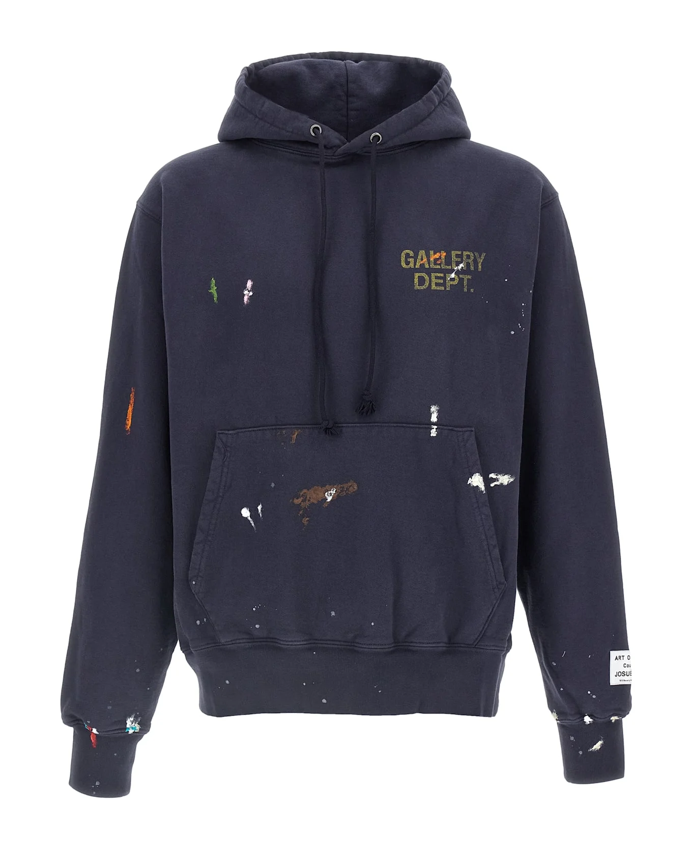 'GD Paint Logo' hoodie in used-effect fleece cotton, paint stains and front print, back print, kangaroo pocket, long cuffed sleeves, dropped shoulders and 'Art on Display' patch applied. Gallery Dept. 's patented washing process uses fading techniques unique to each garment, including logos and graphics. Composition: 100% cotton Made in: United States of America Color: Blue Size and fit: - oversized fit Model number: GPH50044VINTAGENAVY1