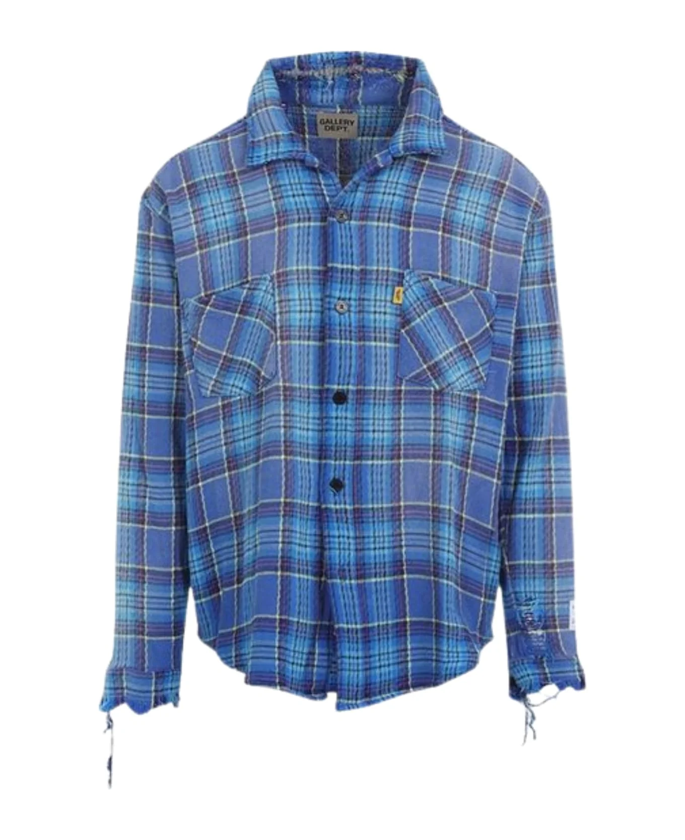 blue plaid pattern frayed edges long sleeves button fastening cotton material Color: Green Model number: MYF1131LTGREEN