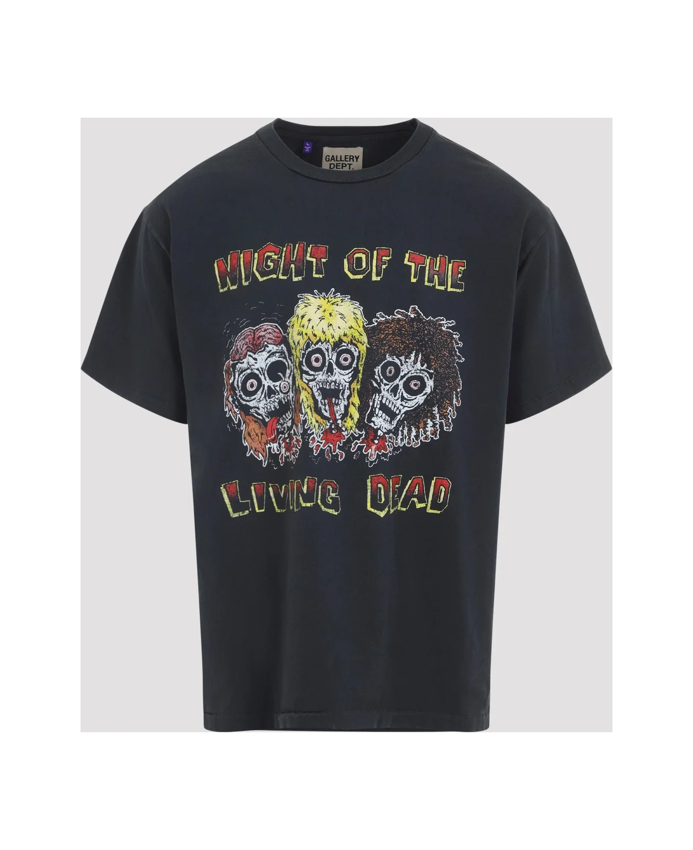 Gallery Dept. Night Of The Living Dead Grey Cotton T-shirt. Crafted from grey cotton jersey, ribbed crewneck, 'Night Of The Living Dead' graphic on the front, gold glitter logo on the back, straight hem, relaxed fit. Made in: United States of America Color: GREY Model number: LDT10233GRAPH