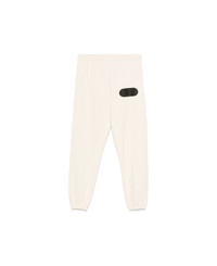cream white cotton jersey texture elasticated waistband with internal drawstring two side inset pockets graphic print to the leg elasticated ankles fleece lining full-length When buying this unisex item, keep in mind that it is graded in standard men's sizing. Made in: United States of America Color: NEUTRALS Model number: GSP40006CREAM