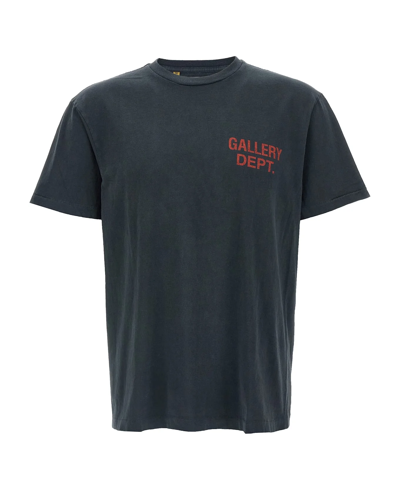'Souvenir' cotton jersey T-shirt with used effect print, front and back print, crew neck, short sleeves with dropped shoulders. Gallery Dept. 's patented washing process uses fading techniques unique to each garment, including logos and graphics. Composition: 100% cotton Made in: United States of America Color: Black Size and fit: - Relaxed fit Model number: ST10302WASHEDBLACK