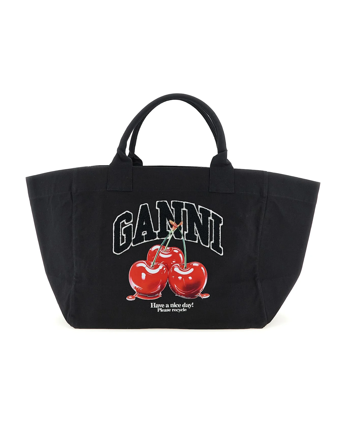 'Black XXL Cherry Tote' canvas shopping bag with front graphic print, double fixed handle. SUSTAINABLE: This product is made with recycled cotton. Composition: 100% recycled cotton Made in: India Color: Black Size and fit: - W 65 x H 36 x D 19 cm Model number: B2110037252