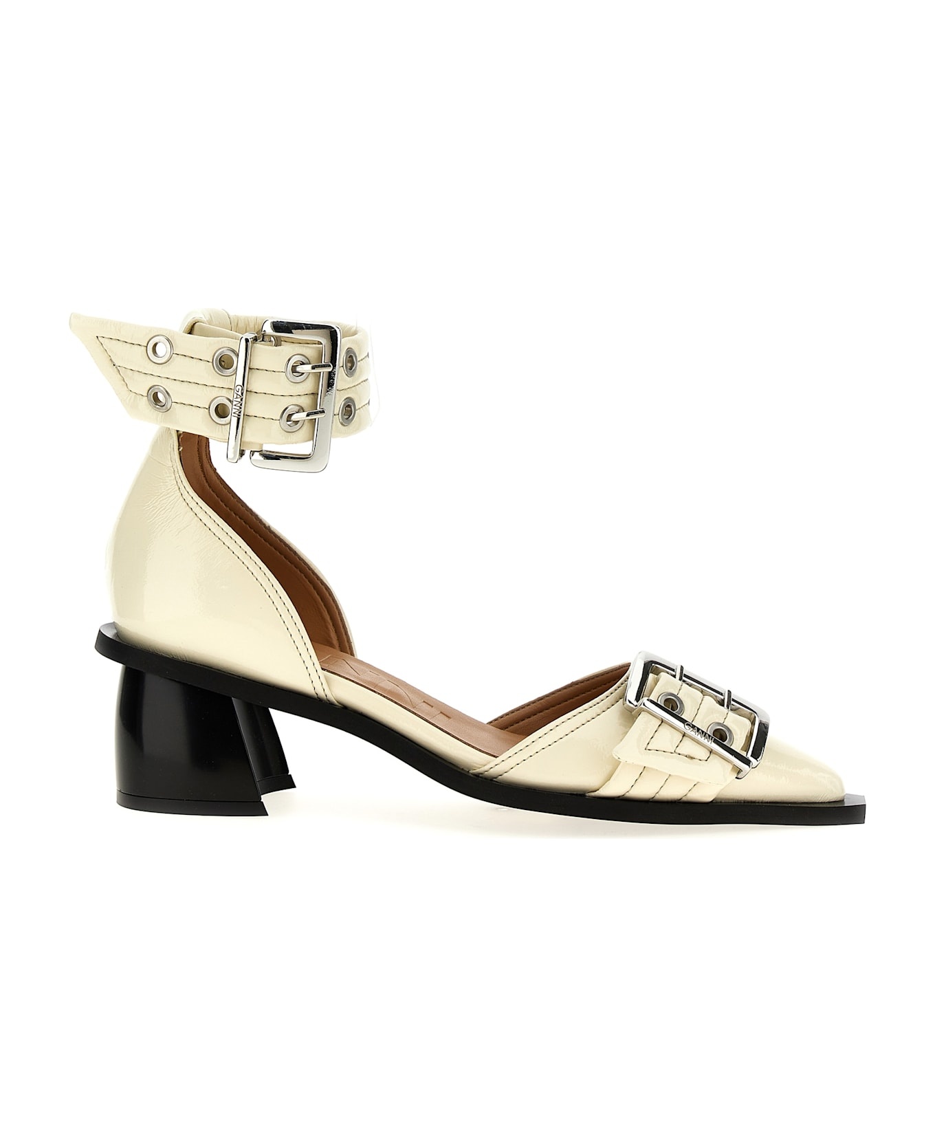 IVORY FEMININE BUCKLE OPEN CUT PUMPS