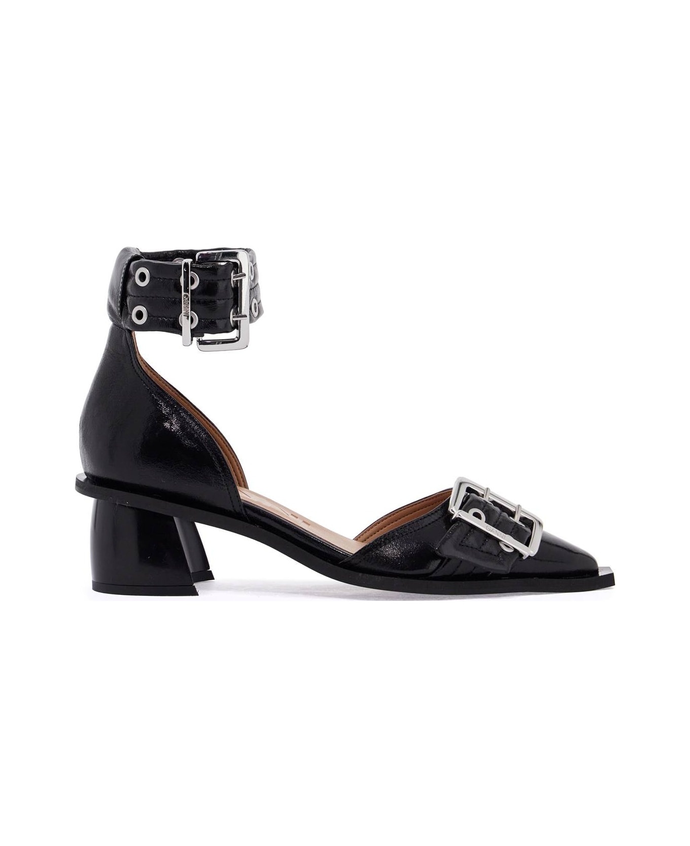 BLACK FEMININE BUCKLE OPEN CUT PUMPS