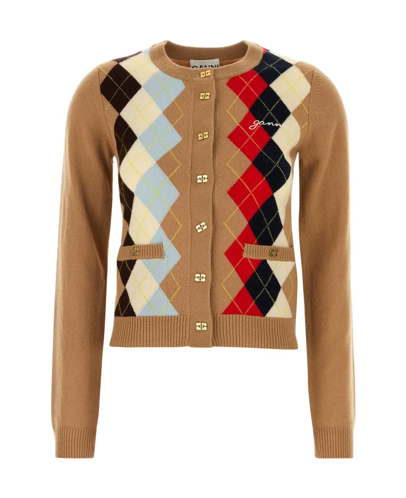 Camel Wool Blend Cardigan from Ganni Made in: China Color: INCENSE Model number: A107005502Q