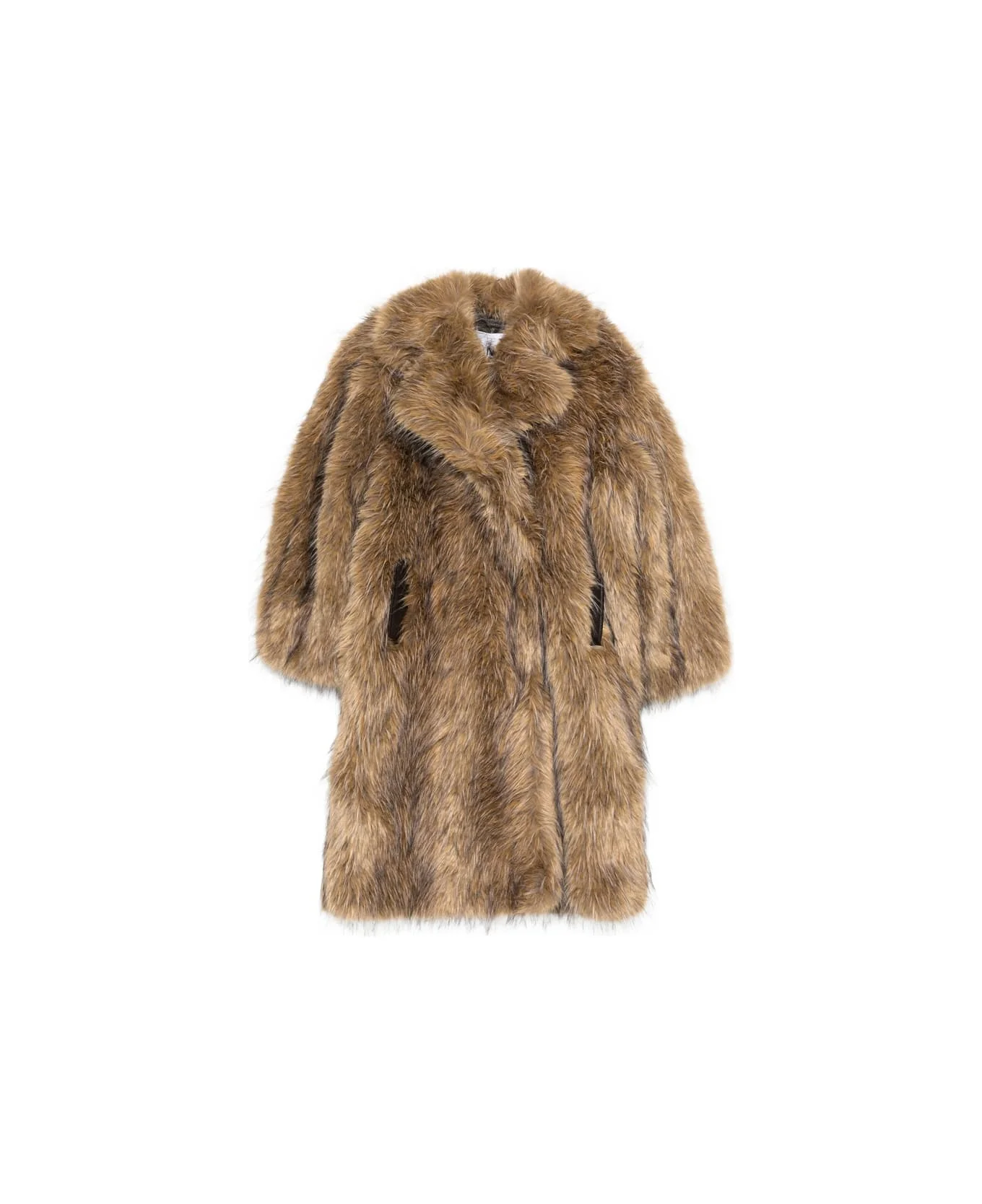 notched-lapel faux-fur coat