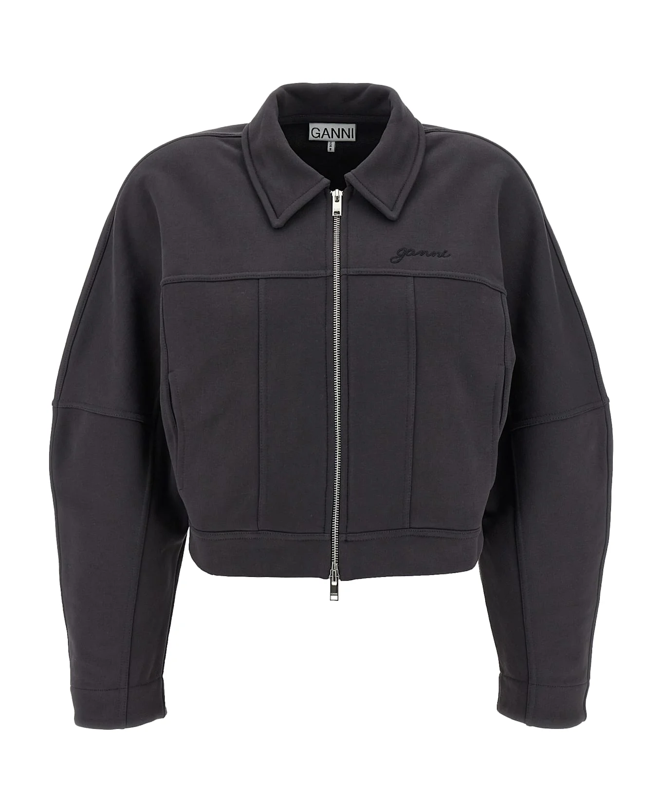 'Heavy Terry Jersey' bomber jacket in brushed cotton jersey with tone-on-tone embroidery logo and front zip closure, crop model, shirt collar, pockets, long wide sleeves with cuffs. SUSTAINABLE: This product is made of organic cotton. Composition: 100% organic cotton Made in: Portugal Color: Gray Size and fit: - true to size fit Model number: T4358252