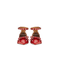 Red Eyelet Jewel Ballerina Flats