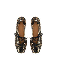 LEOPARD PRINTED DENIM EYELETS LACE UP BALLERINAS