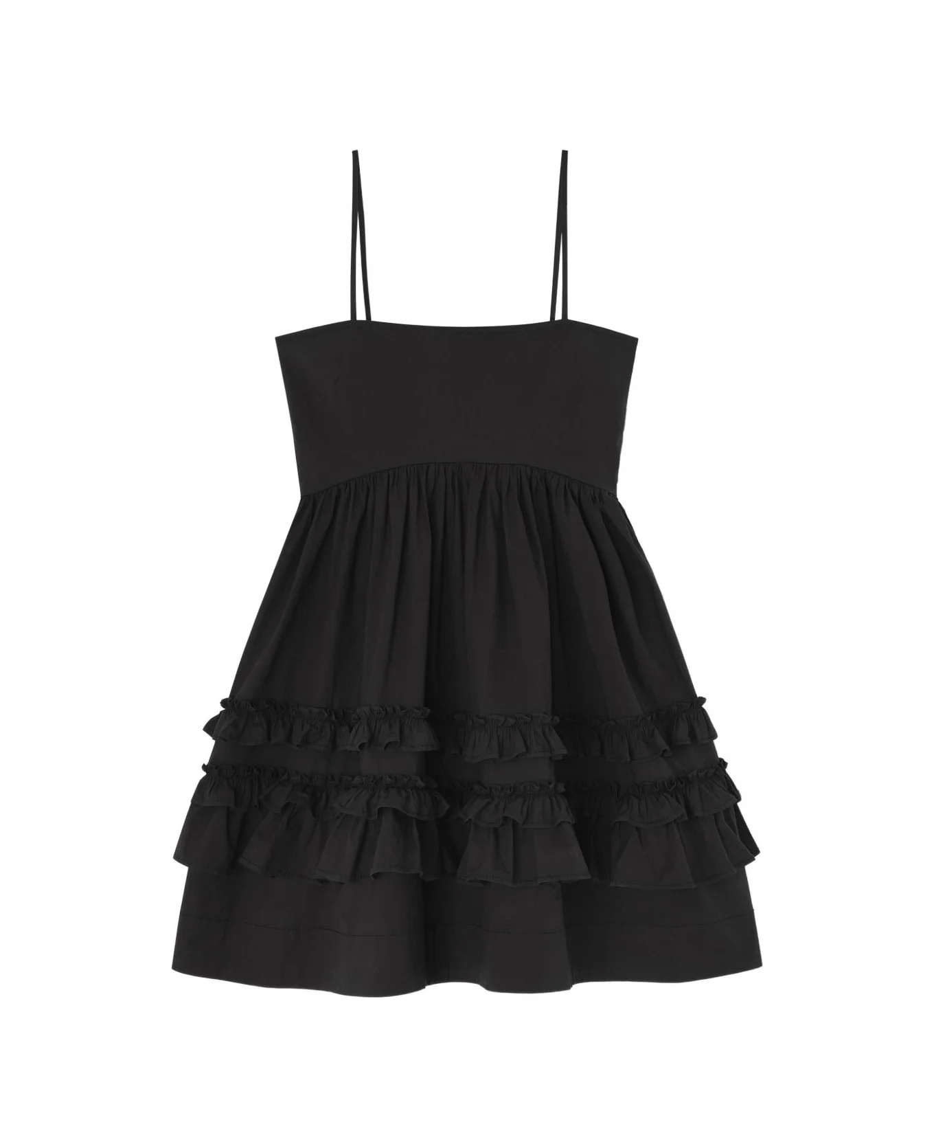 black ruffled tiers thin straps square neck smocked back panel gathered detail Composition: 97% Organic Cotton, 3% Elastane Made in: India Color: Black Model number: A1030207099