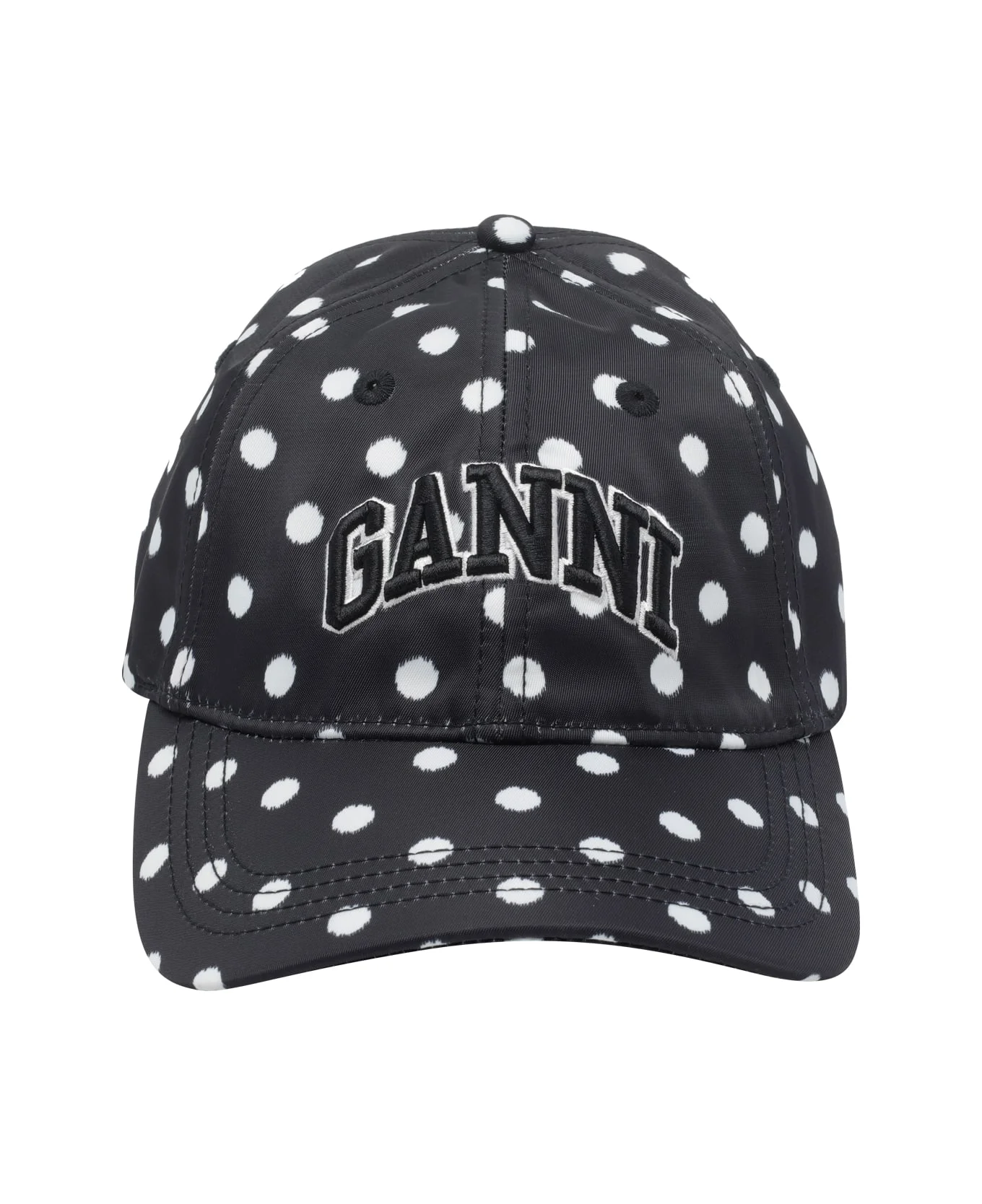 Ganni black Printed logo baseball cap, printed model, frontal logo Composition: 100% Nylon Made in: China Color: Black Size and fit: - UNI SIZE Model number: B3020038099