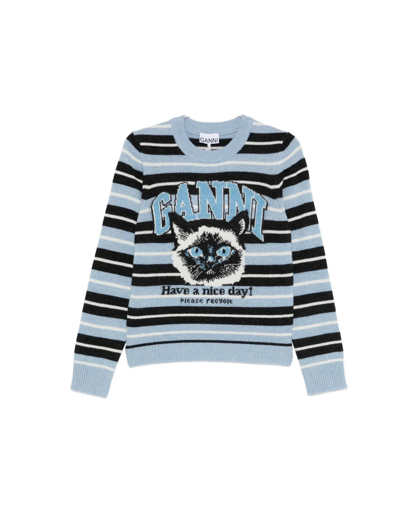 blue stripe pattern patterned jacquard round neck long sleeves ribbed hem Composition: Wool, 45% , Recycled Wool, 35% , Recycled Polyamide, 20% Color: Clear Blue Model number: A1070266326