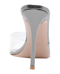 Gianvito Rossi black Elle sandals, round toe, rubber upper, transparent effect Composition: 100% Rubber/leather Sole Made in: Italy Color: Silver Size and fit: - Heel 11 cm Model number: G1190015RICGMETRLD