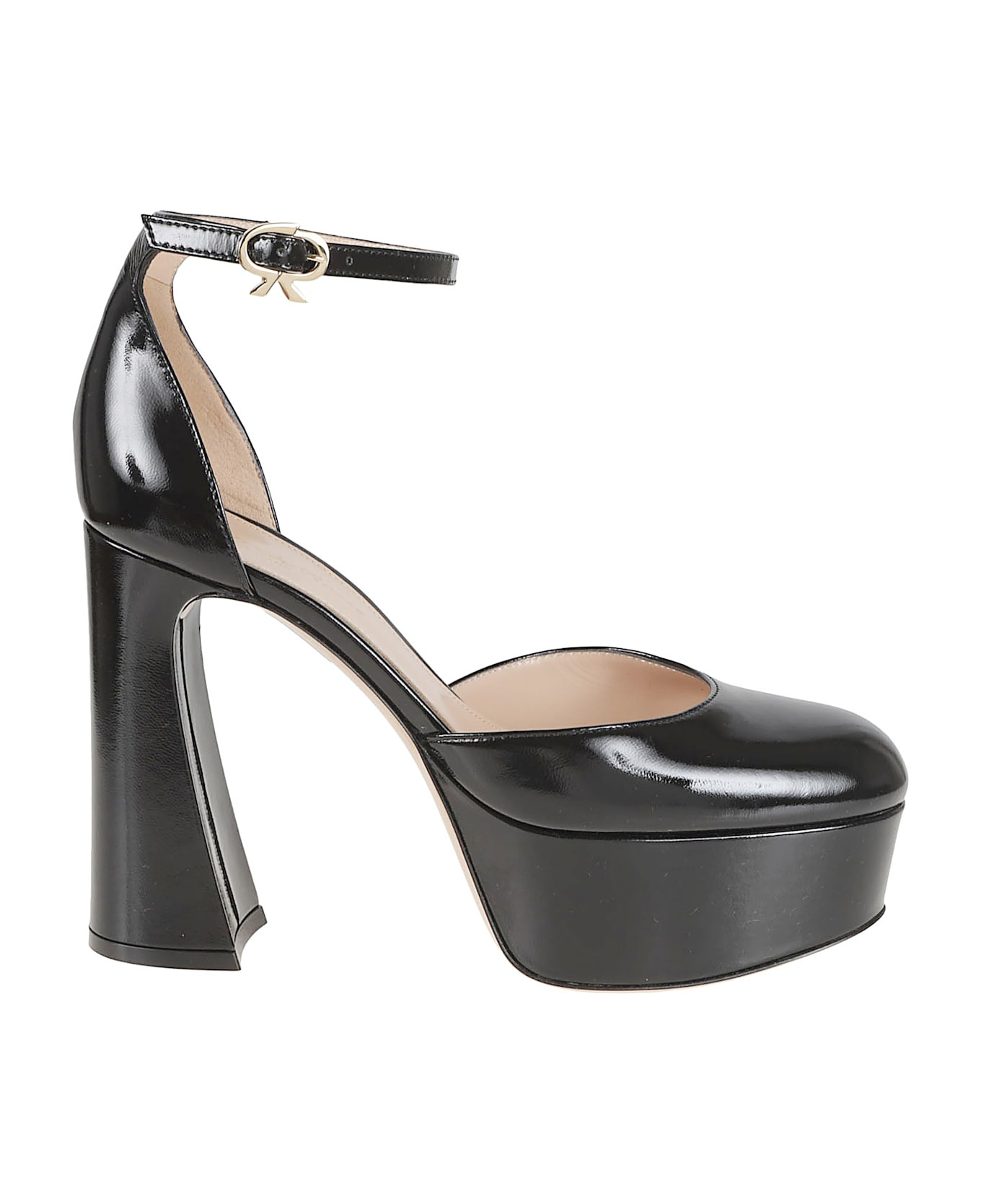 Holly d`Orsay leather shoe by GIANVITO ROSSI. Rounded toe; ankle strap with a round buckle. Made in: Italy Color: Nuinero Size and fit: - Heel 12 cm Model number: G4044570RICNUINERO