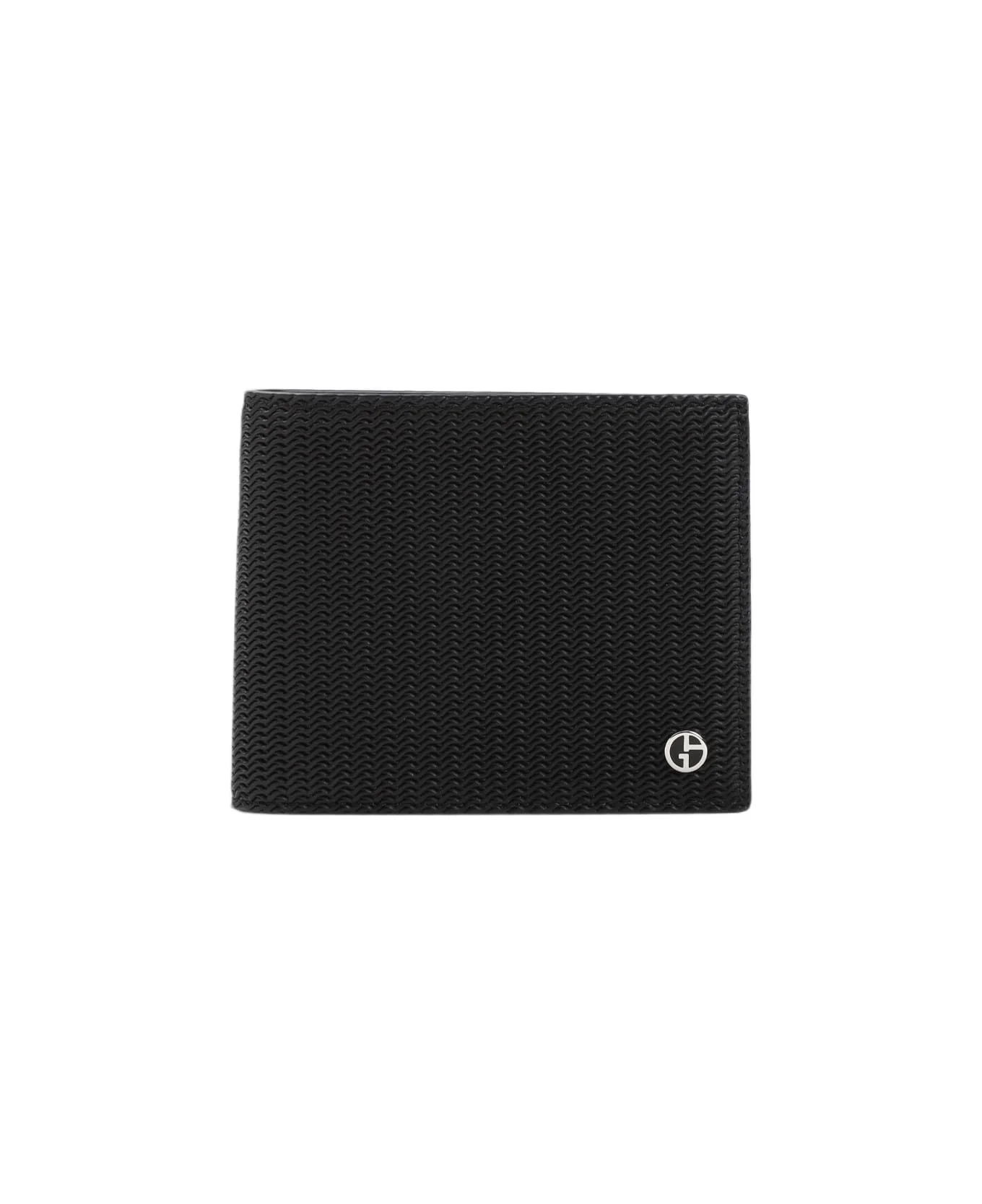Giorgio Armani Black Calf Leather Wallet. Pure black calf leather wallet, embossed waved design, side metallic logo, inner engraved logo, inner eight card slots, top bill compartment. Made in: Italy Color: Nero Size and fit: - W:12cm H:11cm D:3cm Model number: Y2R120YS16E80001