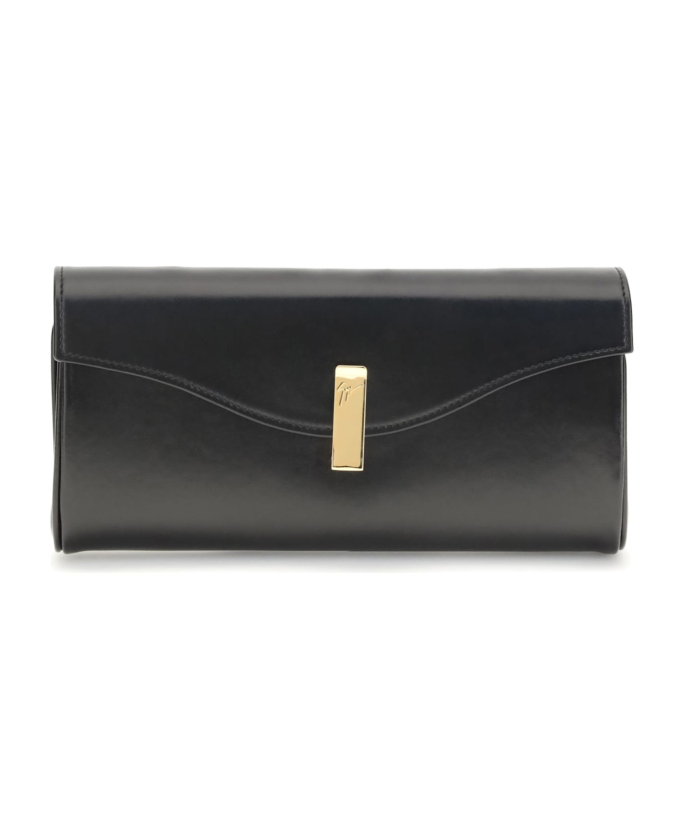 The flutie clutch bag by giuseppe zanotti is a compact and refined accessory designed to complete any look with style. made of smooth leather, it is distinguished by the logoed metal closure that adds an iconic and recognizable detail. the gold-tone chain shoulder strap lends a touch of luminous elegance, while the interior, equipped with a slip pocket and card slot, offers essential functionality. ideal for evening occasions or for adding a chic accent to your everyday outfit. Composition: 100% % Leather Made in: Italy Size and fit: - W 23 x H 12 x D 3 cm Model number: EB50002006