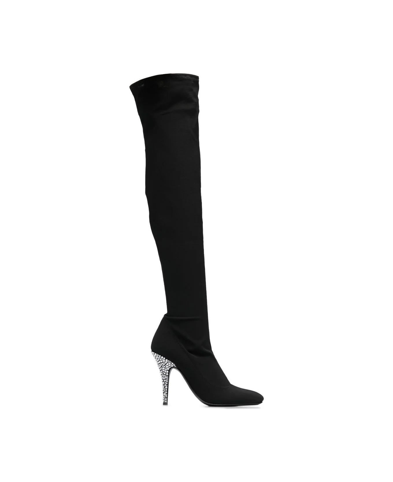 Calixtee Cuissarde 110mm thigh-high boots from Giuseppe Zanotti featuring black, calf leather, rhinestone embellishment, pointed toe, side zip fastening, branded insole and high heel. Composition: Outer: Calf Leather, 100% , Fabric, 100% Sole: Calf Leather, 100% Lining: Fabric, 100% Made in: Italy Color: Black Size and fit: - W Heel 4,3 in / 11 cm x H x D cm handle Platform 0,4 in / 1 cm Model number: I280004C93399001