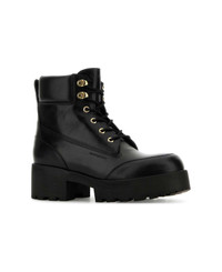 Black Leather Trekker Ankle Boots