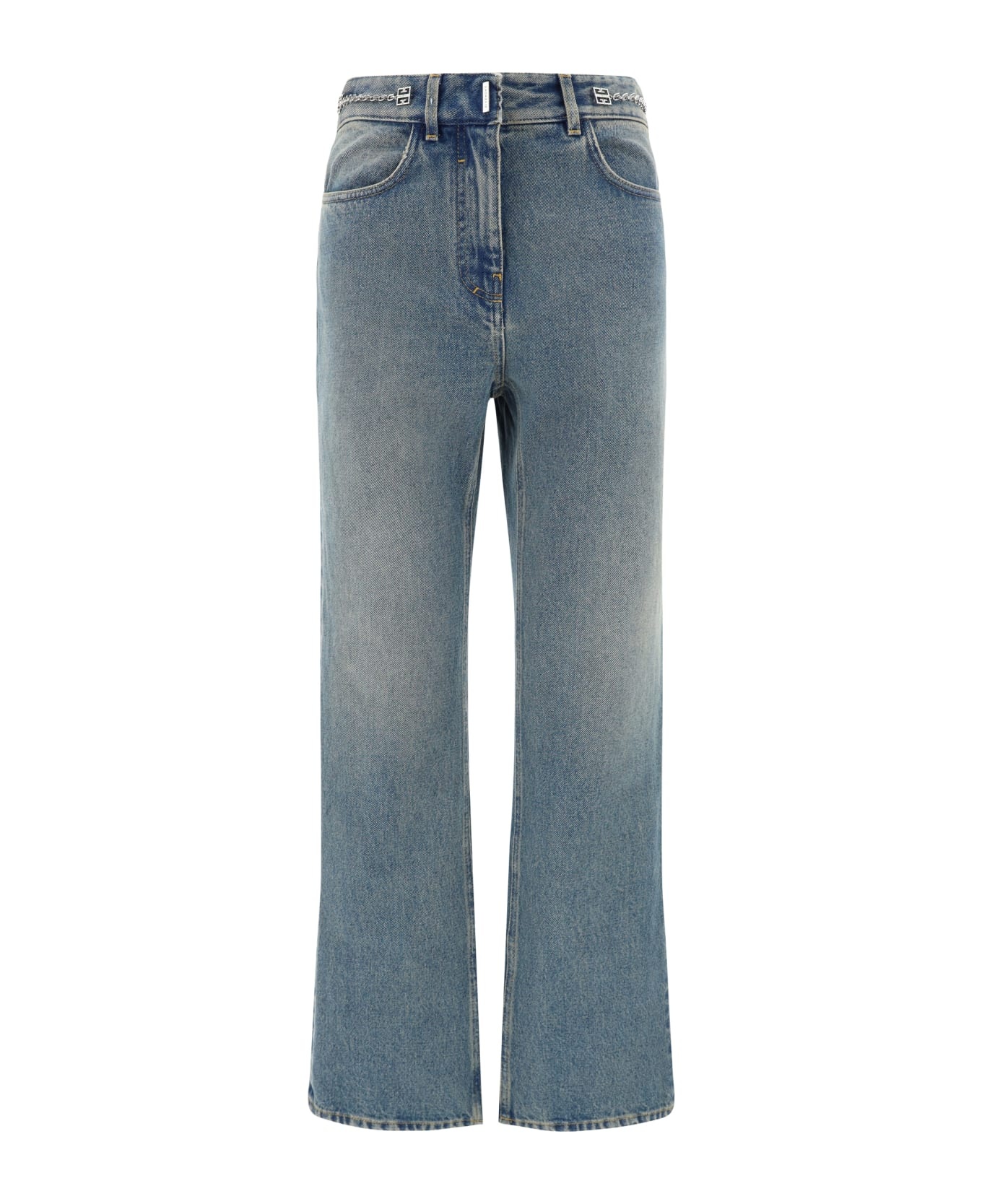 BOOT CUT PANTS IN DENIM WITH CHAIN DETAILS