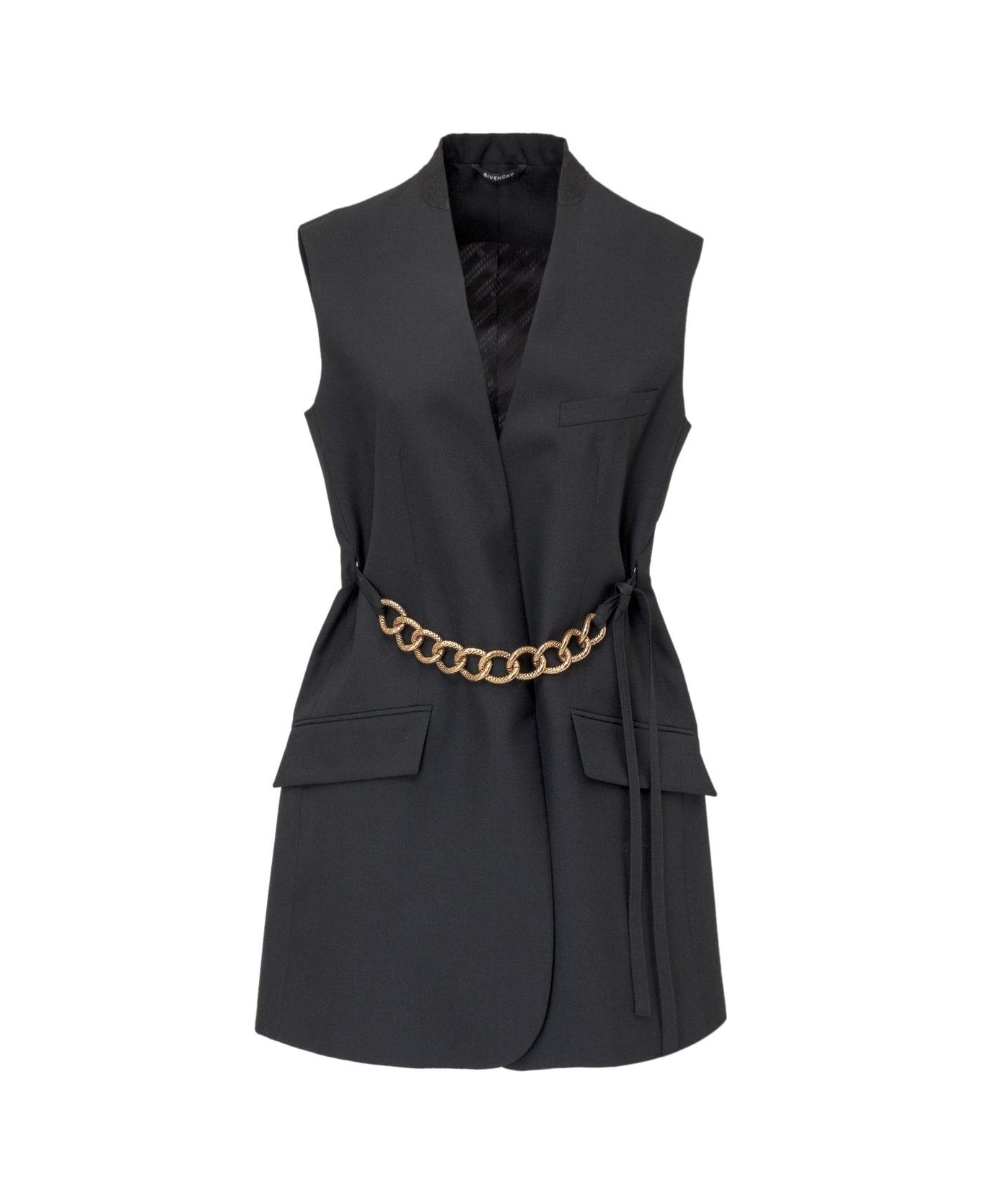 SLEEVELESS JACKET IN LIGHTWEIGHT WOOL WITH CHAIN