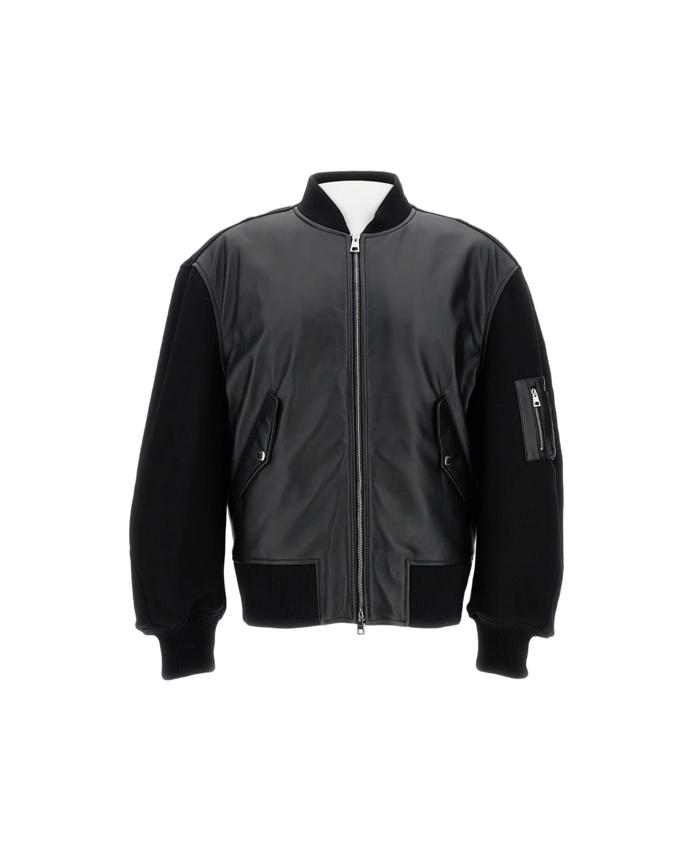 BOMBER IN NAPPA LEATHER AND WOOL