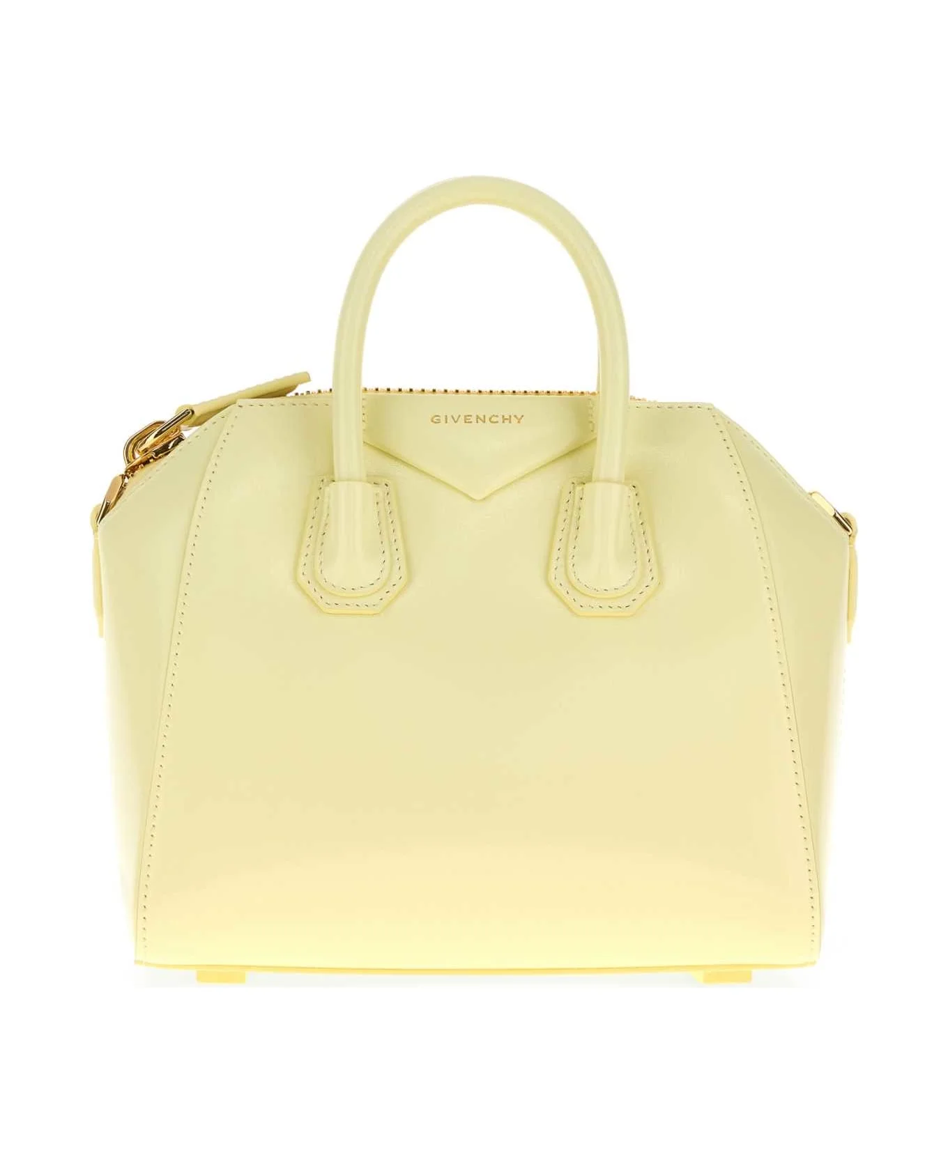 Cream Leather Mini Antigona Handbag from Givenchy Made in: Italy Color: BUTTER Size and fit: - Width: 26 cm Height: 19 cm Depth: 13 cm Handle height: 6 cm Min shoulder strap length: 43 cm Max shoulder strap length: 55 cm Model number: BB5148B13A155
