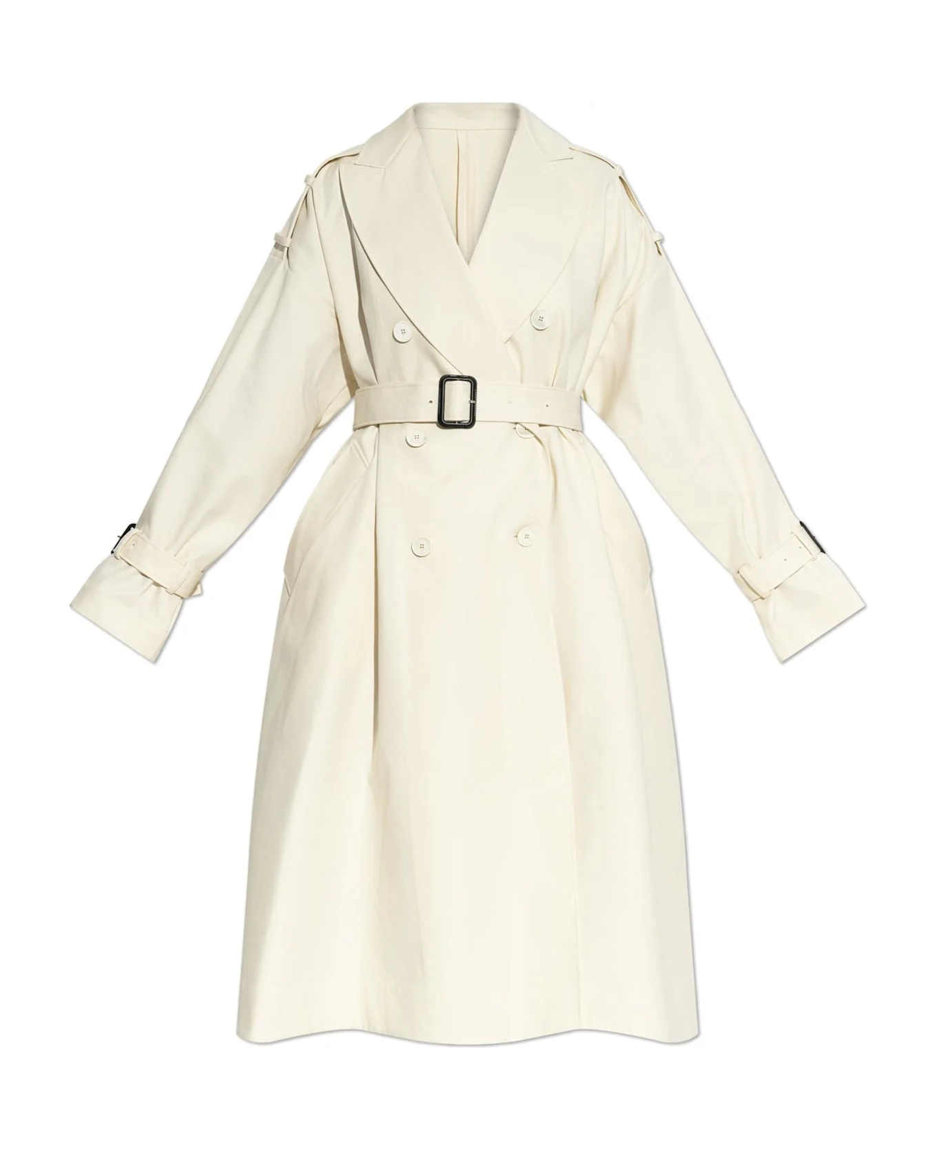 Discover unparalleled sophistication with this cream cotton trench coat from the exclusive Givenchy collection. Masterfully tailored in luxuriously pure cotton, this timeless silhouette gracefully drapes below the knees, striking a refined balance between fluid movement and effortless elegance. The classic double-breasted front is adorned with contrasting cream buttons, complemented by a wide belt cinched at the waist with a bold black rectangular buckle an artful statement of modernity. Adjustable wide cuffs, each detailed with a matching black buckle, echo the main belt, while epaulettes bestow a quintessentially tailored accent. A broad, sculpted collar with elongated lapels completes the look, underscoring its enduring allure. Why choose this product? Exceptional craftsmanship by the renowned house of Givenchy Pure cotton fabric offers comfort and breathability Elegant, versatile cut suitable for any sophisticated occasion Unique, eye-catching belt and cuff details for an unmistakable silhouette Timeless design enriched by distinctive designer heritage Composition: 100% Cotton Color: White Model number: BW00S21632105