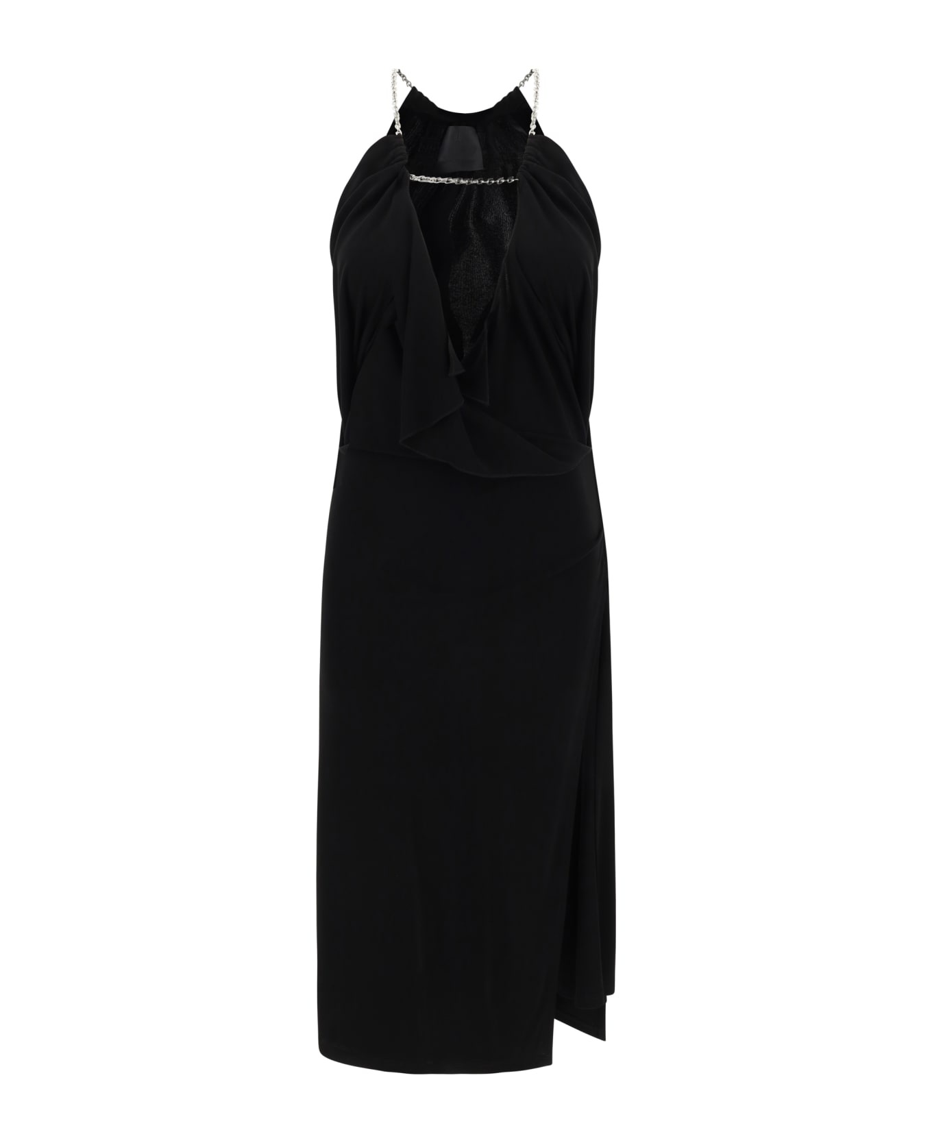 Chain-embellished ruffled crepe de chine midi dress
