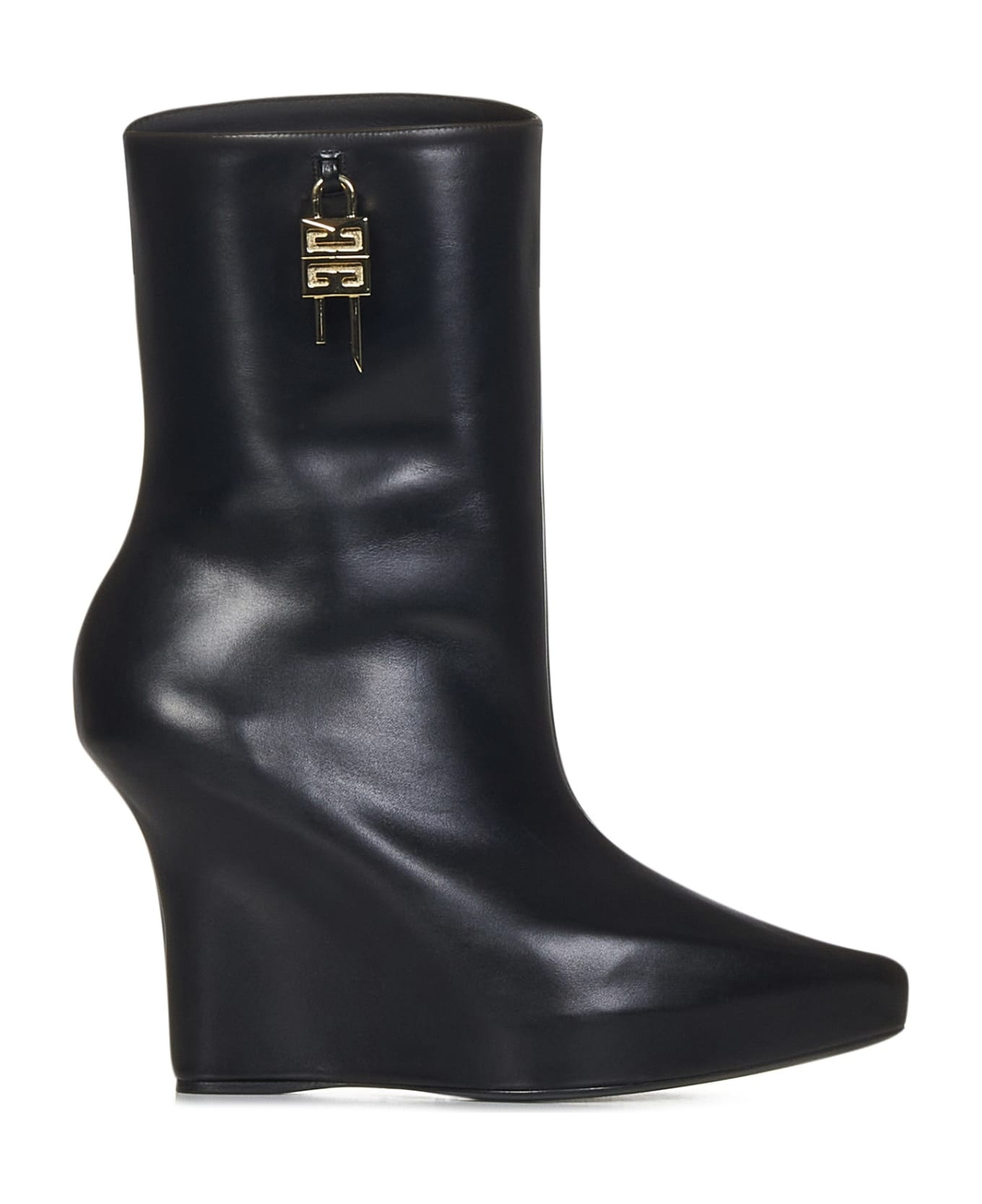 100% calf leather - Inner: Leather - Insole: Leather - Sole: Leather - Pointed toe - Slip on - Gold-tone metal G lock - High wedge heel Made in: Italy Color: Black Size and fit: - Heel 8,5 cm Model number: BE6041E1M1001
