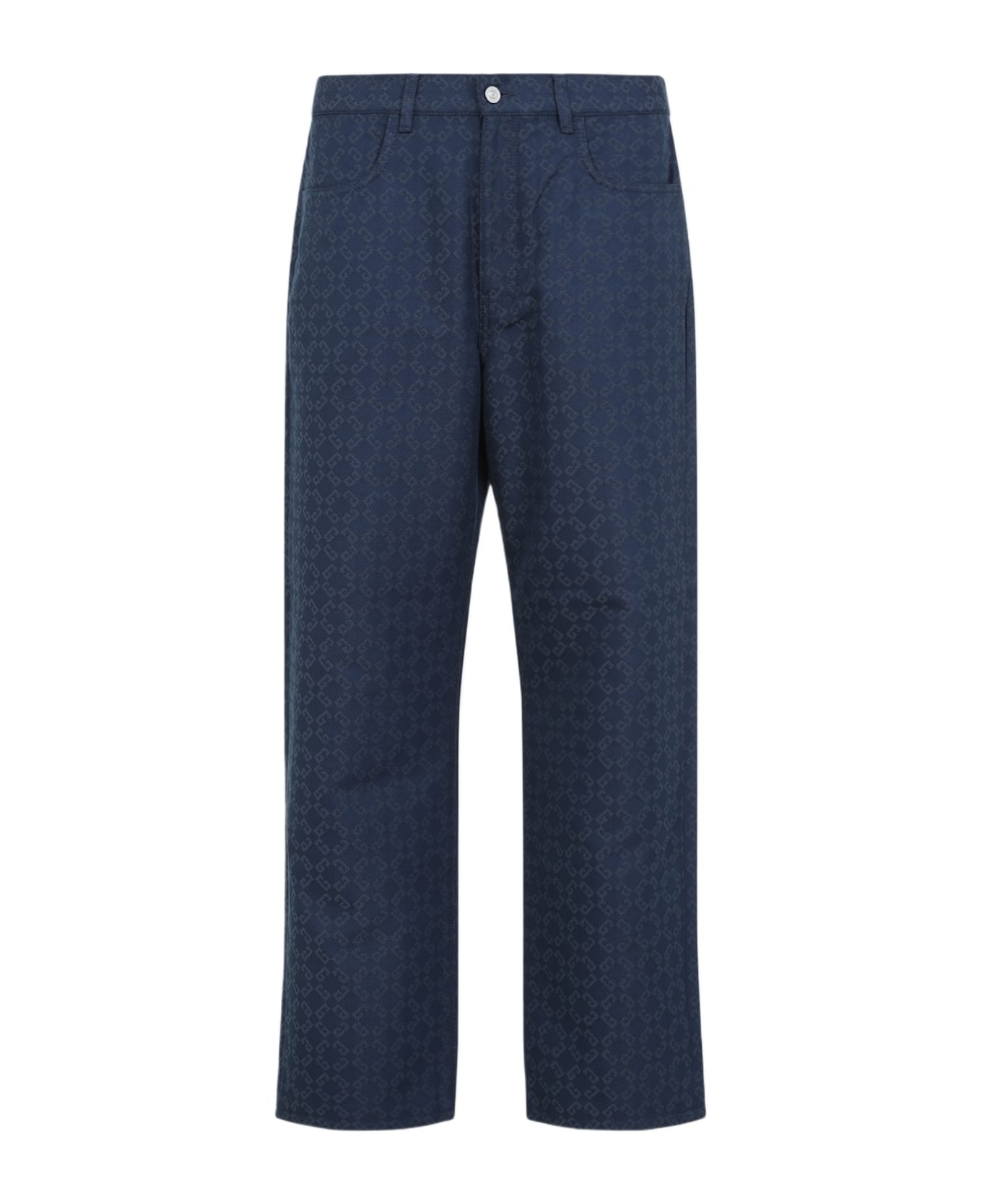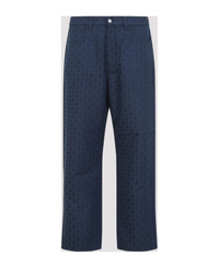 Givenchy Grey Blue Cotton Pants. Crafted in cotton and polyester blend. Front concealing zipped fastening, front buttoned fastening, belt loops, side pockets, belt loops, back pockets, straight hem. Blue background with grey signature G logo pattern all-over. Made in: Italy Color: Grey Blue Model number: BM51E35YC8063