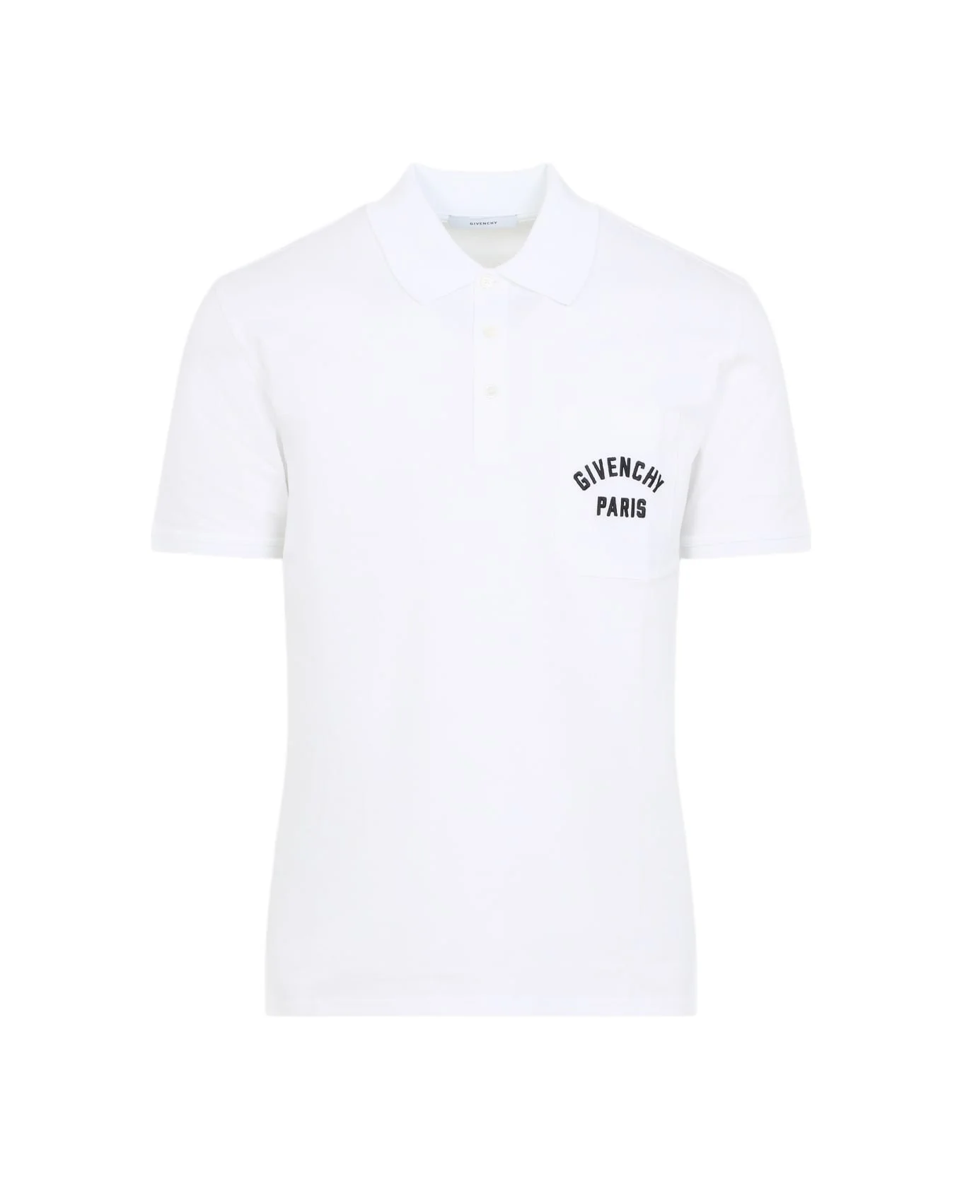 Givenchy White Cotton Polo. Pure white cotton polo, classic polo collar, chest contrasting black embroidered lettering logo, short sleeves, straight hem, tonal stitching. Made in: Italy Color: White Model number: BML00T3YSD100