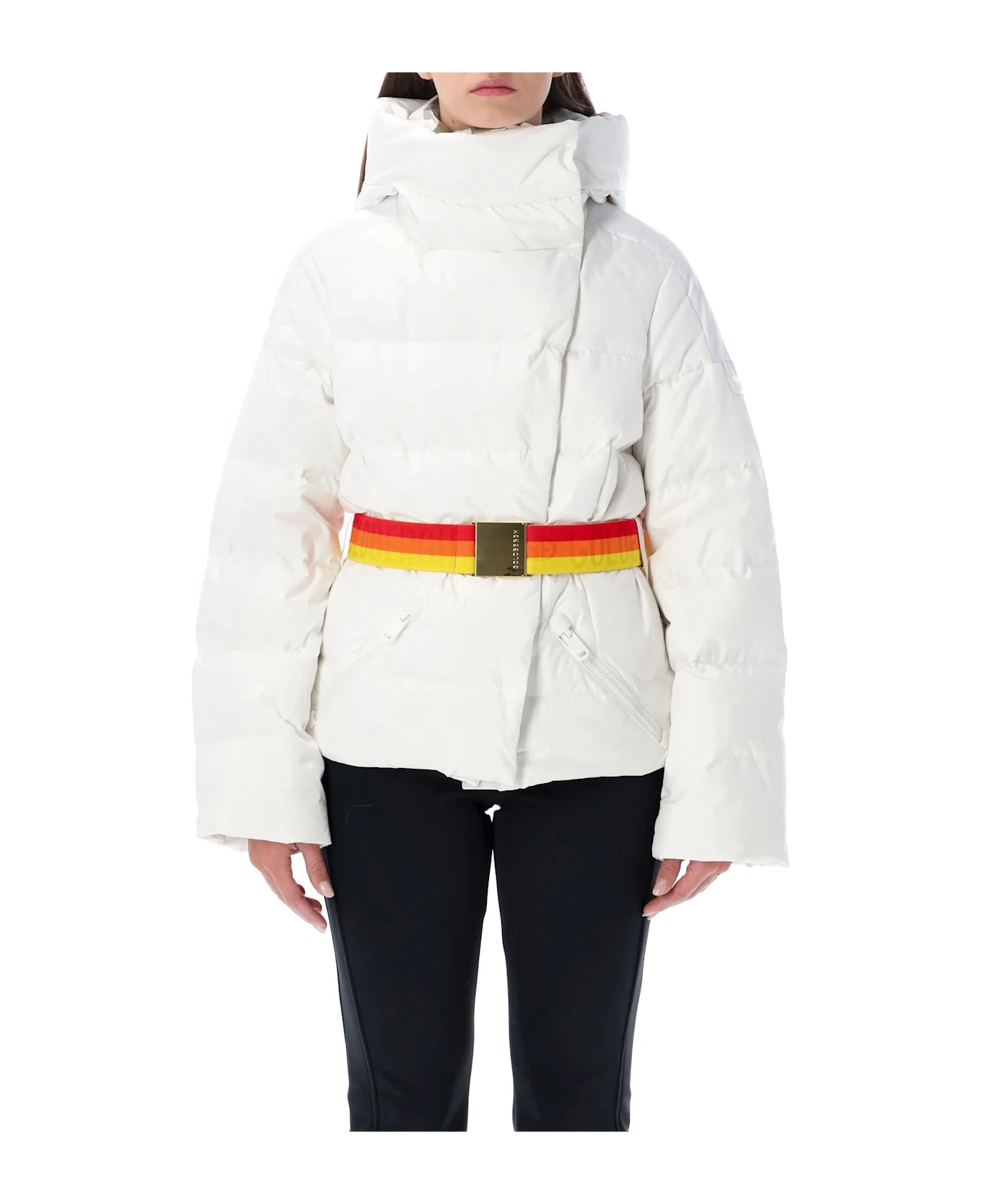 The Bufera Ski Jacket By Goldbergh Blends High Performance With Refined Alpine Style. Crafted From A Partly Recycled Outer Shell And Lined With An Anti-odor Finish, This Quilted Down Jacket Provides Superior Warmth Thanks To Rds-certified Down Filling. Featuring A Fixed Hood, Detachable Snowcatcher, And Multiple Pockets For Ski Essentials, It s Designed To Ensure Comfort And Protection On And Off The Slopes. Partly Recycled Outer Shell Fabric Partly Recycled Lining With Anti-odor Finish Rds-certified Down Filling Fixed Hood Detachable Snowcatcher Two Side Pockets, Two Internal Pockets, And Ski Pass Sleeve Pocket Knitted Inner Cuffs Two Elastic Belts Alessandra Is 1,75 M And Wears Size 38 Composition: 58% polyester, 42% recycled polyester Lining, 58% polyester, 42% recycled polyester Filling, 90% down, 10% feathers Made in: Hong Kong Color: WHITE Model number: GB002212548000