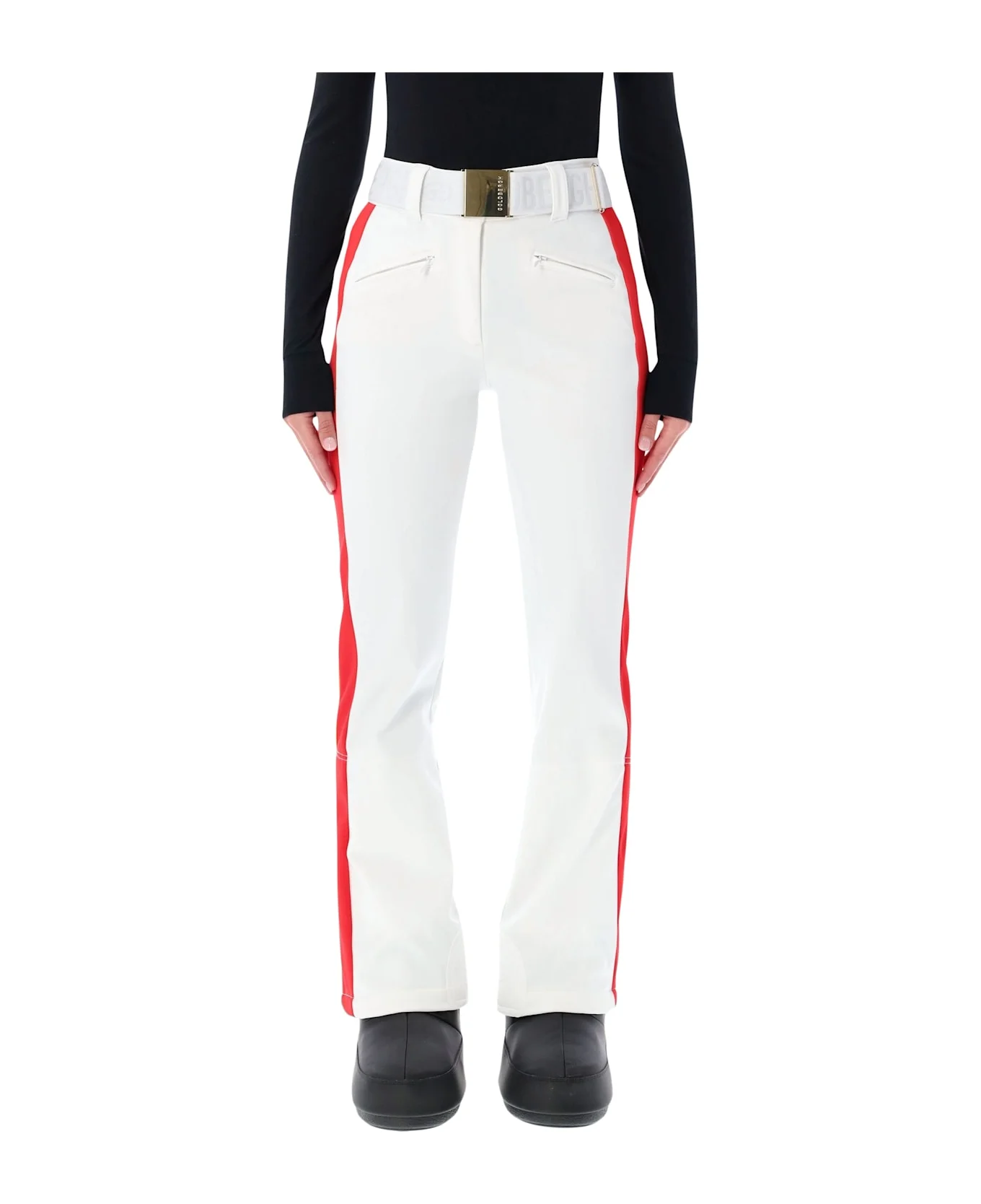 A Sleek Blend Of Performance And Sophistication. The Roccia Ski Pants By Goldbergh Are Crafted From Technical Stretch Softshell Fabric, Offering A Flattering Slim Fit And Superior Comfort. Featuring Contrast Side Stripes For A Dynamic Silhouette, An Elastic Logo Belt, And Zipped Hems, These Pants Deliver Both Function And Elegance On The Slopes. Technical Stretch Softshell Fabric Contrast Color Side Stripes Two Zipped Front Pockets Elastic Logo Belt With Metal Buckle Back Hem Zippers Internal Snowcatcher Slim Fit Alessandra Is 1,75 M And Wears Size 38 Composition: 74% polyamide, 26% elastane Made in: China Color: WHITE Model number: GB016792548000