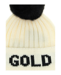 'Hodd' ribbed wool blend beanie with contrast jacquard logo turn-up, fur-effect fabric pompom, fleece inner band. Composition: 70% acrylic 30% wool Made in: China Color: White/Black Size and fit: - One size Model number: GB600012538371