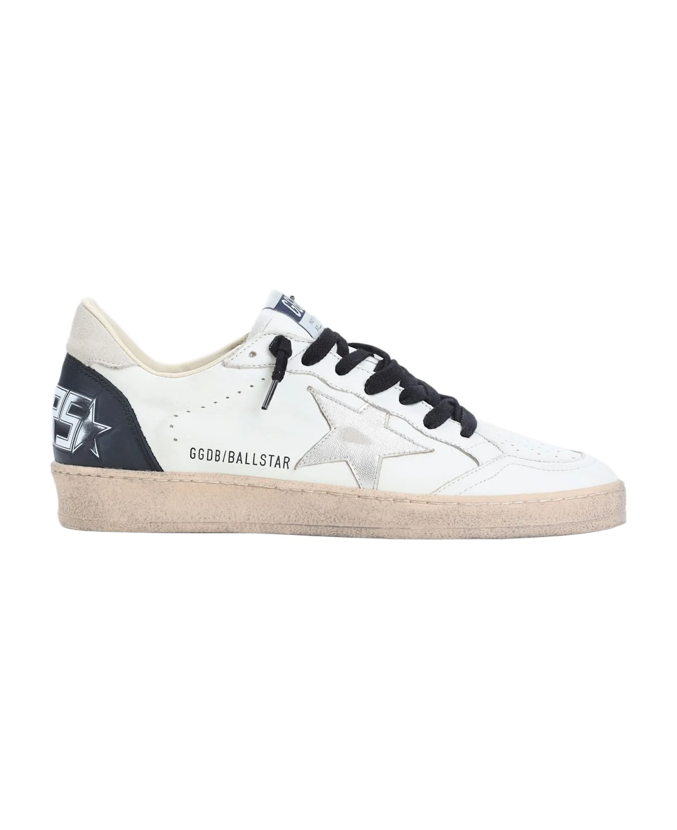 Golden Goose White Ovine Leather Ballstar Sneakers. Crafted in ovine leather, cow leather and goat leather. Round toe, top contrasting black lace-up fastening, patch logo on the tongue, side platinum grey signature star detail, side lettering logo, back black detail with contrasting white logo, beige sole. Made in: Italy Color: White Beige Platinum Black Model number: GMF00117F00816483258