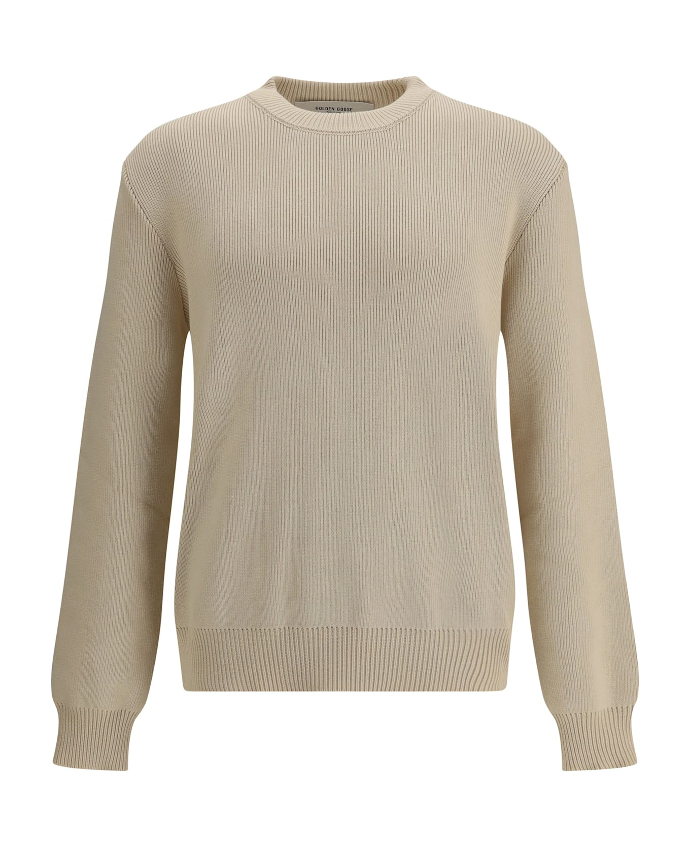 Men’s beige crew neck sweater with ‘Golden’ lettering on the back
